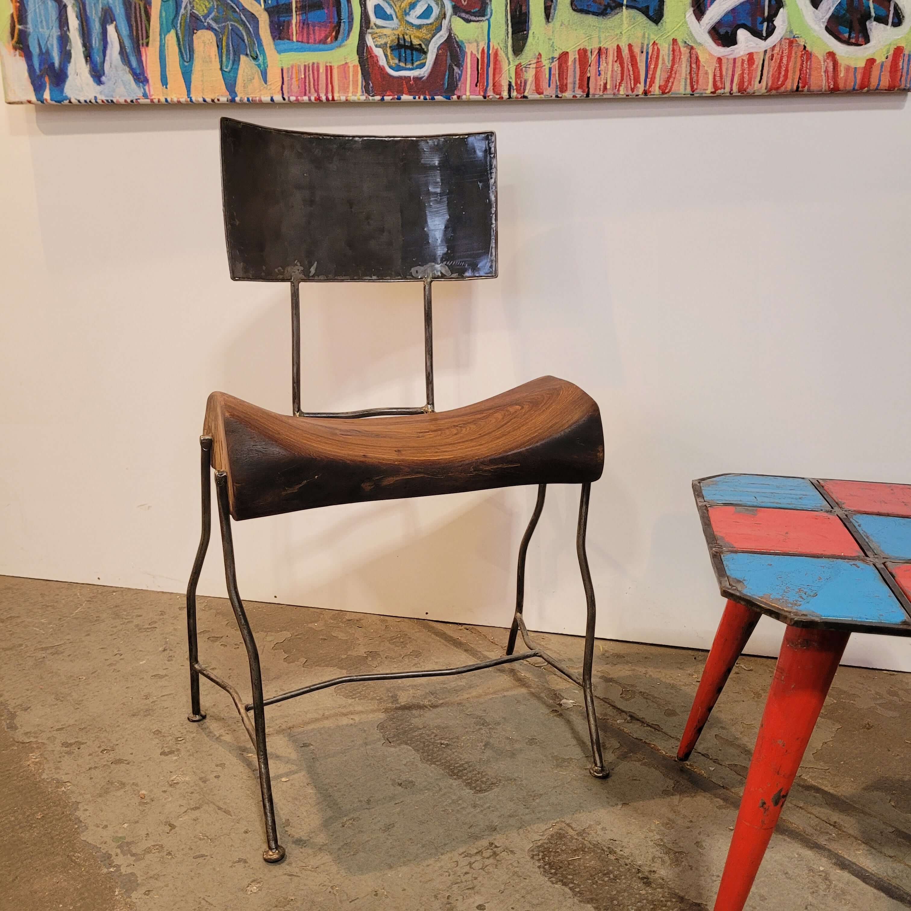 Stuhl “Nisa Tabru” mit Lehne | Unikat Altmetall Palisander-Holz