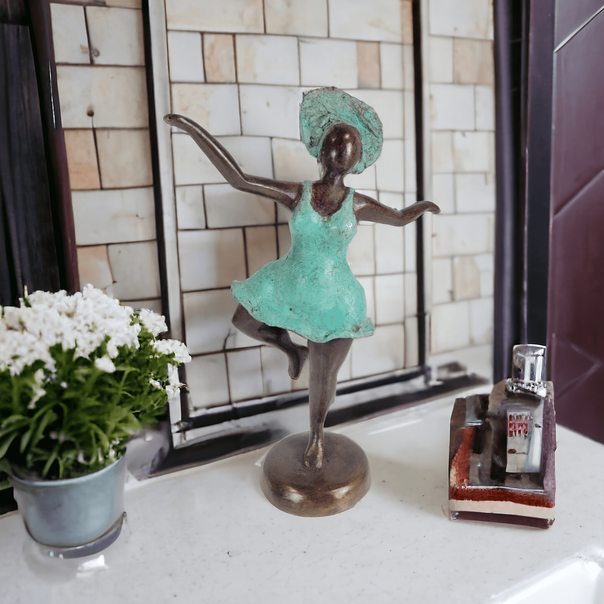 Diese eleganten Bronzeskulpturen wurden vom burkinischen Abdoulaye Soré geschaffen. Die Arbeit mit Bronze ist ein traditionelles Handwerk in Burkina Faso. Der Begriff Bronze bezieht sich auf verschiedene Legierungen auf der Basis von Kupfer, Zink, Blei und Zinn, deren Anteile variieren. Die Bronze stammt heute aus dem Recycling von alten Armaturen, wie Wasserhähnen oder Teilen aus Klimaanlagen.Der Künstler schafft zuerst eine Wachsskulptur, die mit einem Sandgemisch aus Lehm und Dung bedeckt und getrocknet wird. Die Form wird anschließend gekocht, das Wachs schmilzt und entweicht durch die Löcher. Die geschmolzene Legierung wird gegossen und nimmt den Platz des Wachses ein. Nach dem Abkühlen wird die Form gebrochen, um die Skulptur zu entnehmen und die letzten Feinschliffe vorzunehmen. Jedes Stück ist somit ein Unikat. Höhe: ca. 24 cm | Gewicht: ca. 1 kg Verschiedene Farben je nach Verfügbarkeit erhältlich: grün, türkis, blau, rot, braun.Hergestellt und fair gehandelt in Burkina Faso.