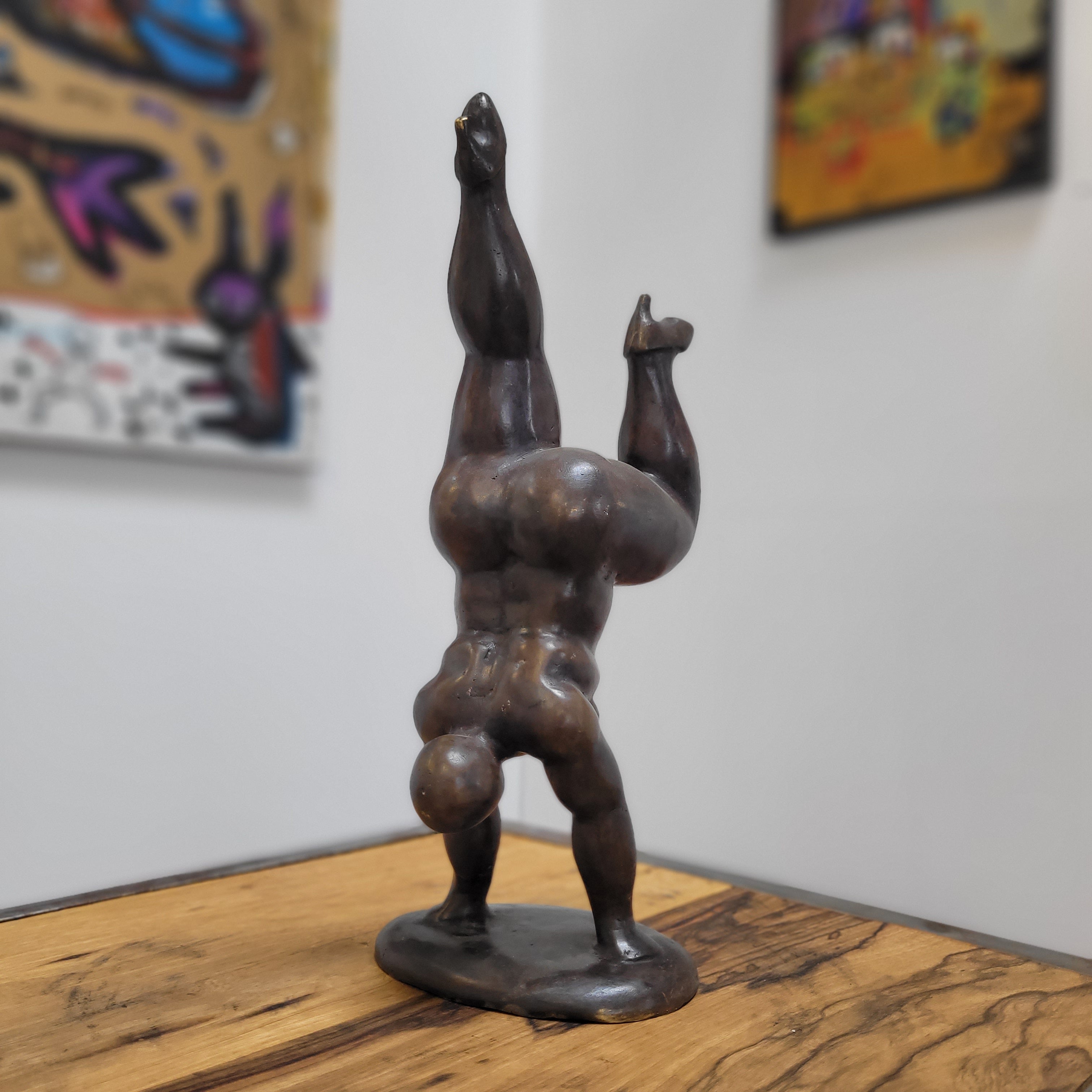 Diese wunderschöne Bronzeskulptur ist ein Einzelstück des burkinischen Künstlers Dermé. Die Arbeit mit Bronze ist ein traditionelles Handwerk in Burkina Faso. Der Begriff Bronze bezieht sich auf verschiedene Legierungen auf der Basis von Kupfer, Zink, Blei und Zinn, deren Anteile variieren. Die Bronze stammt heute aus dem Recycling von alten Armaturen, wie Wasserhähnen oder Teilen aus Klimaanlagen. Der Künstler schafft zuerst eine Wachsskulptur, die mit einem Sandgemisch aus Lehm und Dung bedeckt und getrocknet wird. Die Form wird anschließend gekocht, das Wachs schmilzt und entweicht durch die Löcher. Die geschmolzene Legierung wird gegossen und nimmt den Platz des Wachses ein. Nach dem Abkühlen wird die Form gebrochen, um die Skulptur zu entnehmen und die letzten Feinschliffe vorzunehmen. Jedes Stück ist somit ein Unikat. Höhe: ca. 30 cm Gewicht: ca. 1,7 kg Handgefertigt und fair gehandelt in Burkina Faso.