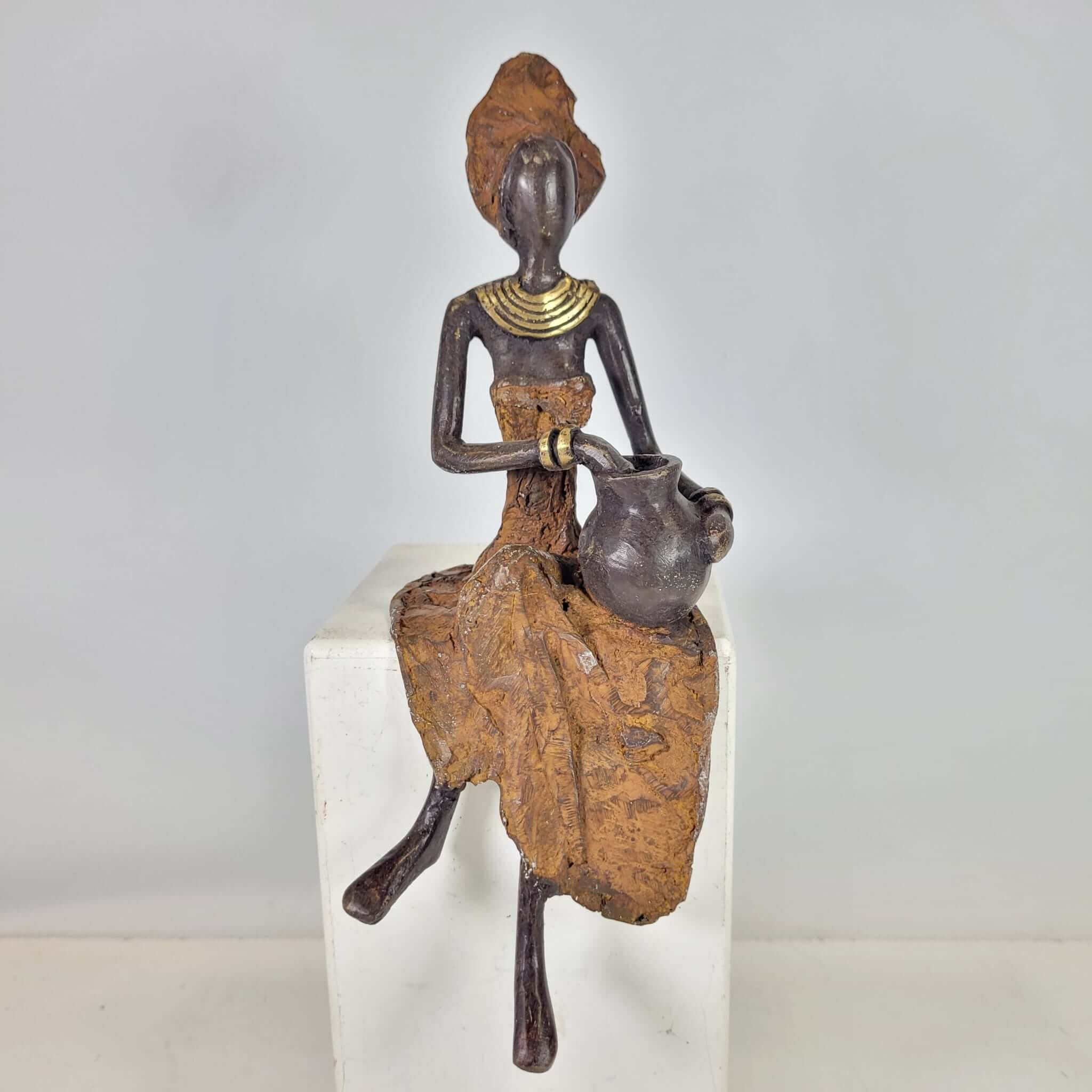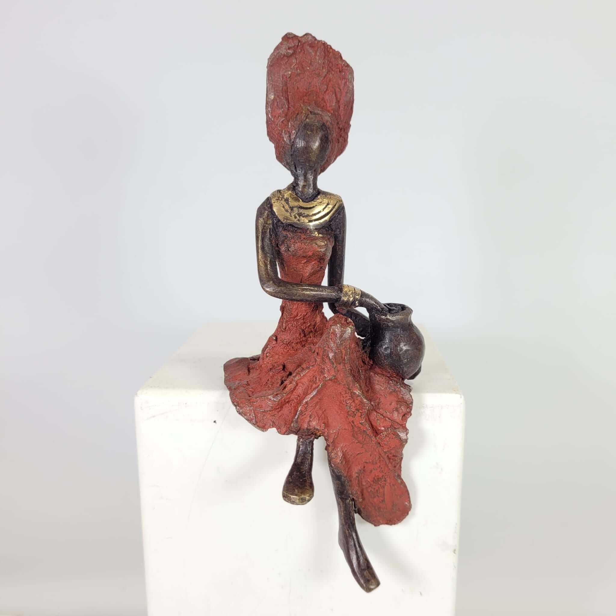Diese eleganten Bronze-Skulpturen wurde vom burkinischen Künstler Alain Soré geschaffen.Die Arbeit mit Bronze ist ein traditionelles Handwerk in Burkina Faso. Der Begriff Bronze bezieht sich auf verschiedene Legierungen auf der Basis von Kupfer, Zink, Blei und Zinn, deren Anteile variieren. Die Bronze stammt heute aus dem Recycling von alten Armaturen, wie Wasserhähnen oder Teilen aus Klimaanlagen.Der Künstler schafft zuerst eine Wachsskulptur, die mit einem Sandgemisch aus Lehm und Dung bedeckt und getrocknet wird. Die Form wird anschließend gekocht, das Wachs schmilzt und entweicht durch die Löcher. Die geschmolzene Legierung wird gegossen und nimmt den Platz des Wachses ein. Nach dem Abkühlen wird die Form gebrochen, um die Skulptur zu entnehmen und die letzten Feinschliffe vorzunehmen. Jedes Stück ist somit ein Unikat.Hergestellt und fair gehandelt in Burkina Faso, Afrika.Jedes Stück ist ein Unikat und kann leicht vom Bild abweichen. Höhe: ca. 15 cm / 25 cm Gewicht: ca. 0,3 kg / 0,6 kg