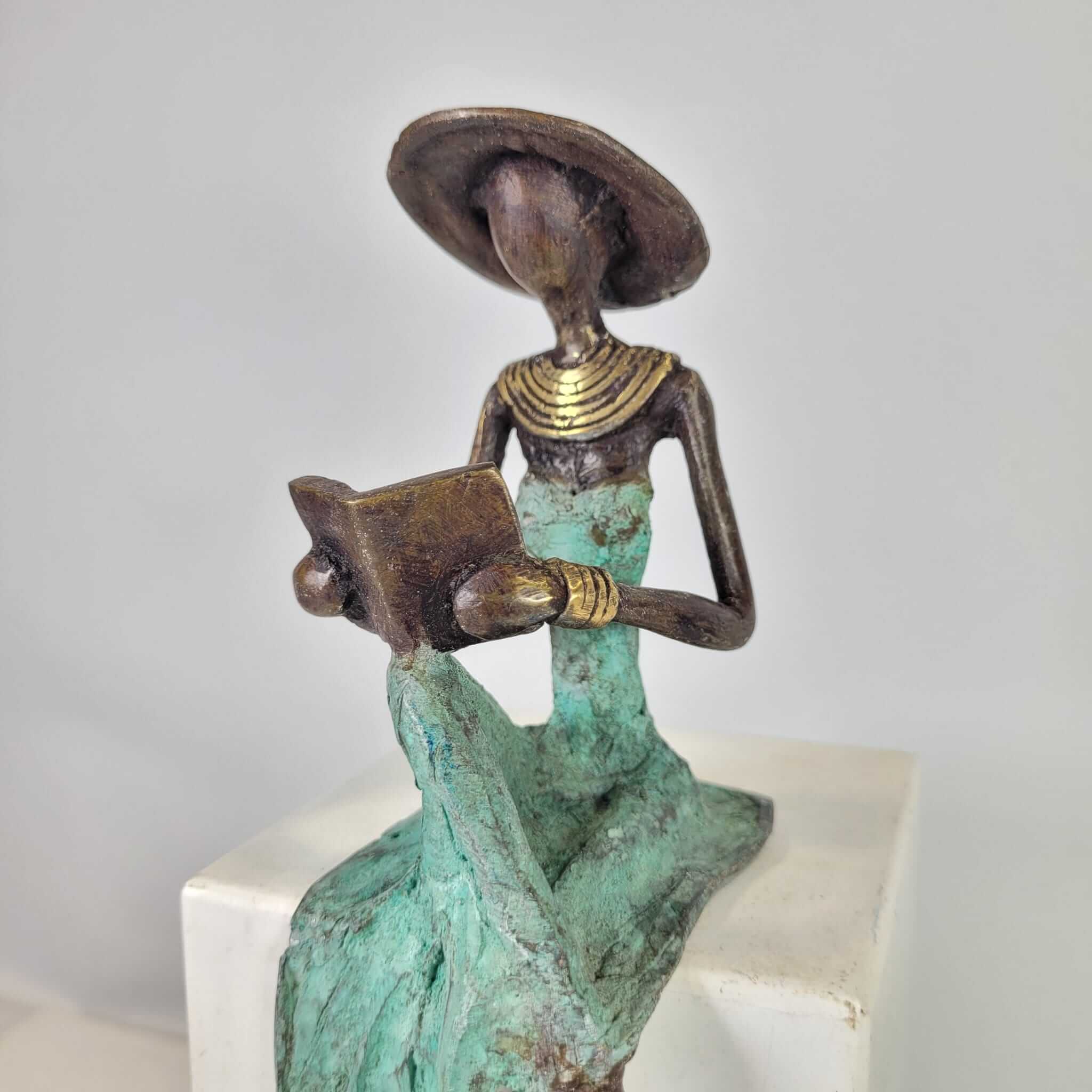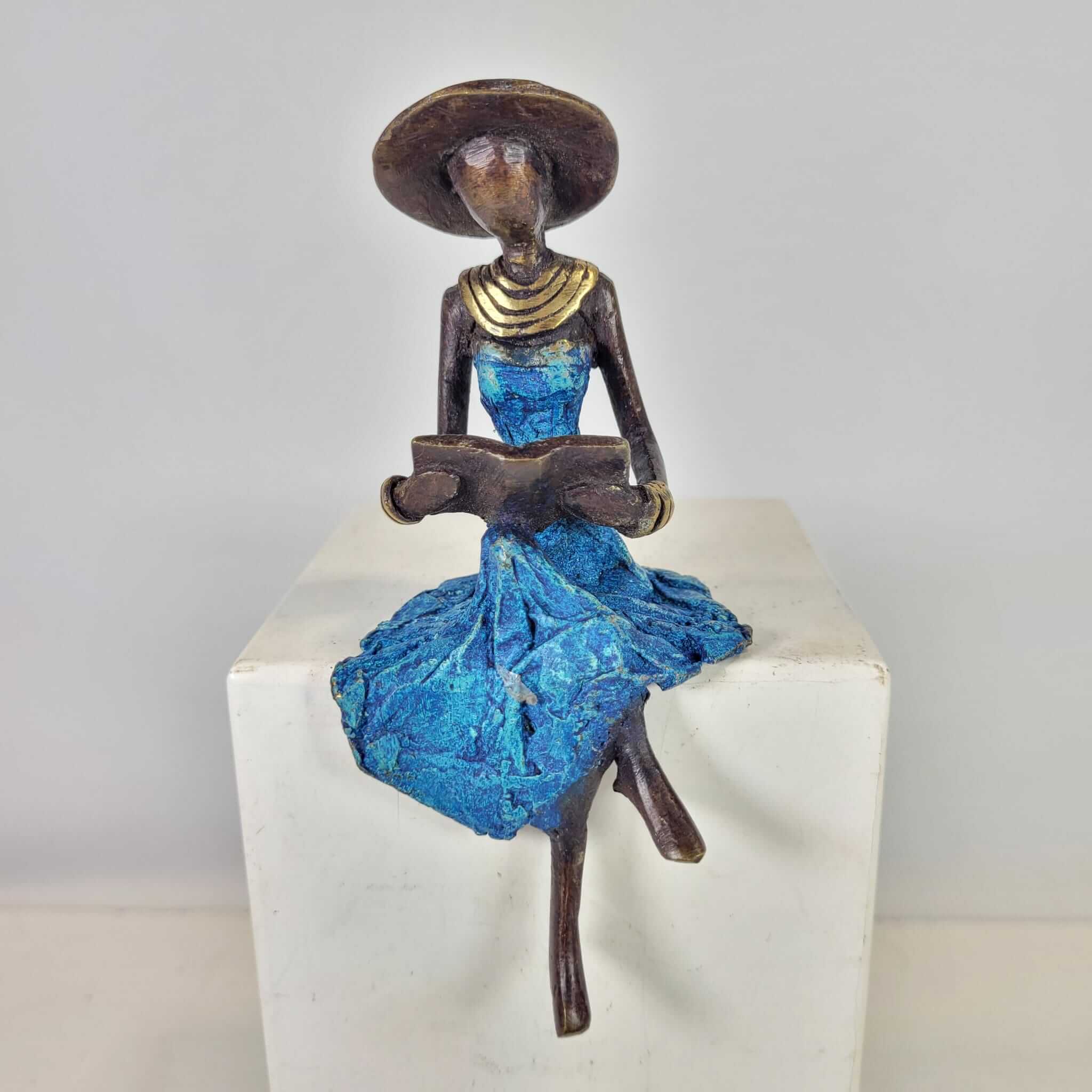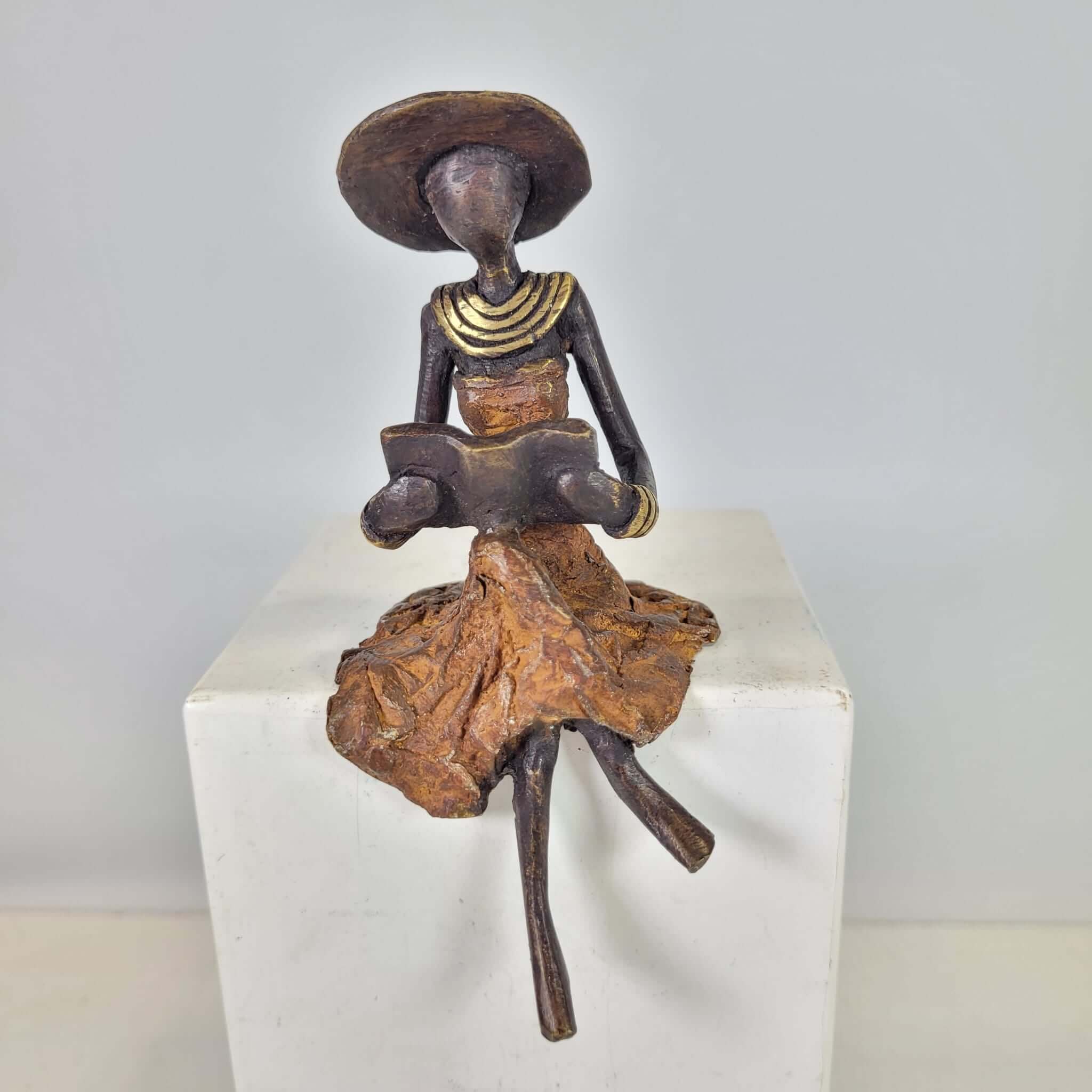 Diese eleganten Bronzeskulpturen wurden vom burkinischen Künstler Soré geschaffen.Die Arbeit mit Bronze ist ein traditionelles Handwerk in Burkina Faso. Der Begriff Bronze bezieht sich auf verschiedene Legierungen auf der Basis von Kupfer, Zink, Blei und Zinn, deren Anteile variieren. Die Bronze stammt heute aus dem Recycling von alten Armaturen, wie Wasserhähnen oder Teilen aus Klimaanlagen.Der Künstler schafft zuerst eine Wachsskulptur, die mit einem Sandgemisch aus Lehm und Dung bedeckt und getrocknet wird. Die Form wird anschließend gekocht, das Wachs schmilzt und entweicht durch die Löcher. Die geschmolzene Legierung wird gegossen und nimmt den Platz des Wachses ein. Nach dem Abkühlen wird die Form gebrochen, um die Skulptur zu entnehmen und die letzten Feinschliffe vorzunehmen. Jedes Stück ist somit ein Unikat.Hergestellt und fair gehandelt in Burkina Faso, Afrika.Jedes Stück ist ein Unikat und kann leicht vom Bild abweichen. Höhe: ca. 15 cm / 20 cmGewicht: ca. 0,25 kg / 0,5kg