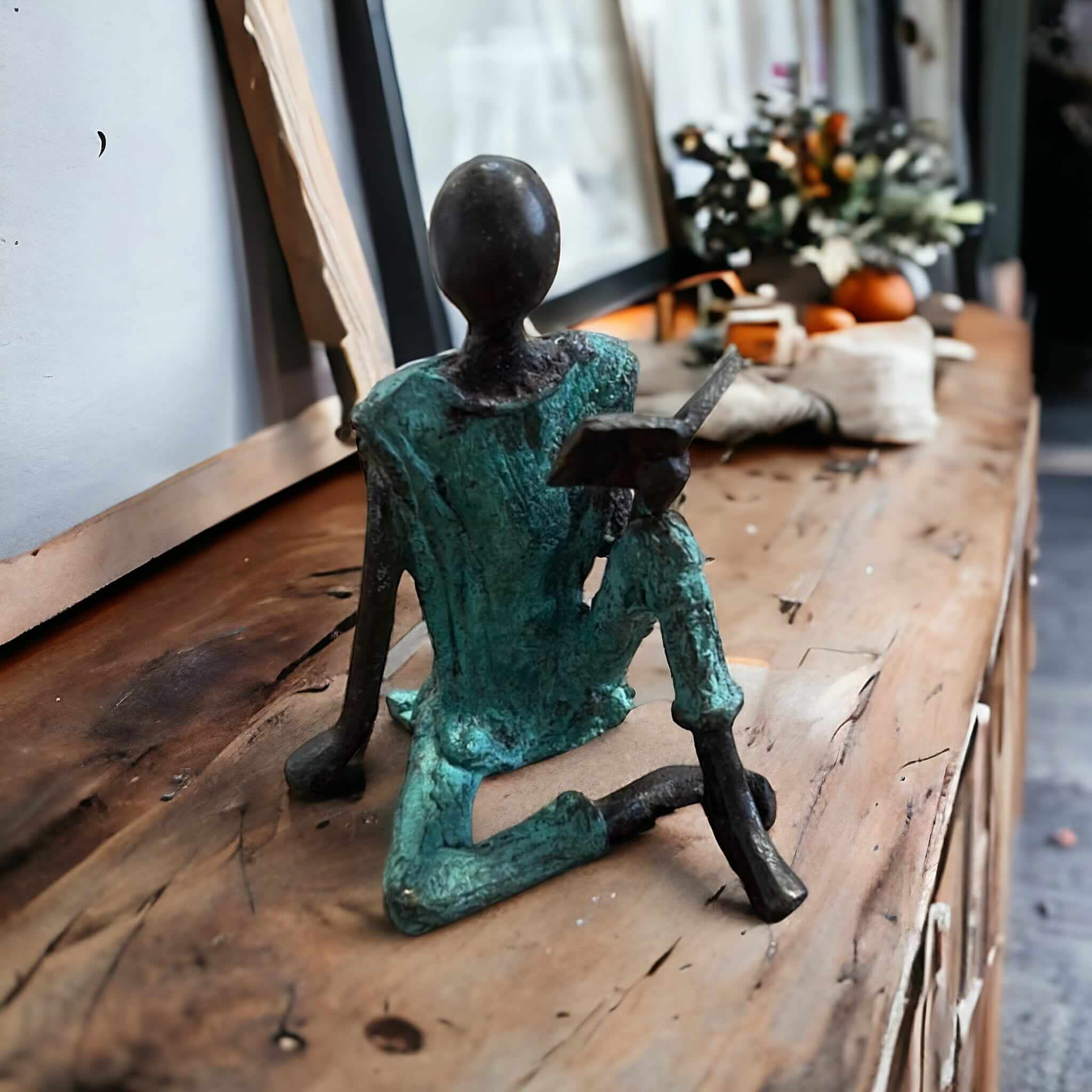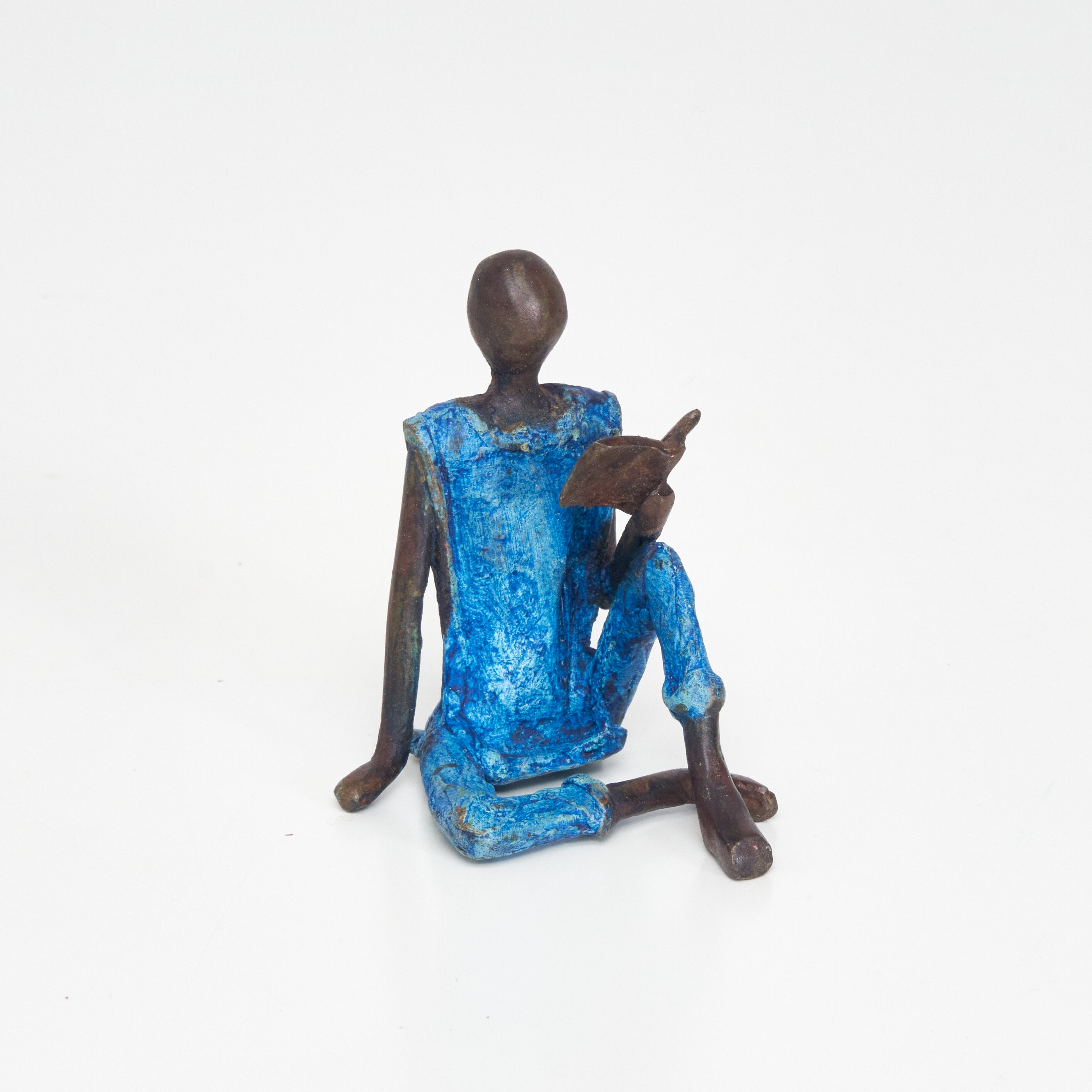 Diese eleganten Skulpturen aus Bronze wurden vom burkinischen Künstler Alain Soré geschaffen.Die Arbeit mit Bronze ist ein traditionelles Handwerk in Burkina Faso. Der Begriff Bronze bezieht sich auf verschiedene Legierungen auf der Basis von Kupfer, Zink, Blei und Zinn, deren Anteile variieren. Die Bronze stammt heute aus dem Recycling von alten Armaturen, wie Wasserhähnen oder Teilen aus Klimaanlagen.Der Künstler schafft zuerst eine Wachsskulptur, die mit einem Sandgemisch aus Lehm und Dung bedeckt und getrocknet wird. Die Form wird anschließend gekocht, das Wachs schmilzt und entweicht durch die Löcher. Die geschmolzene Legierung wird gegossen und nimmt den Platz des Wachses ein. Nach dem Abkühlen wird die Form gebrochen, um die Skulptur zu entnehmen und die letzten Feinschliffe vorzunehmen. Jedes Stück ist somit ein Unikat.Hergestellt und fair gehandelt in Burkina Faso, Afrika.Jedes Stück ist ein Unikat und kann leicht vom Bild abweichen. Höhe: ca. 8 cmGewicht: ca. 0,15 kg