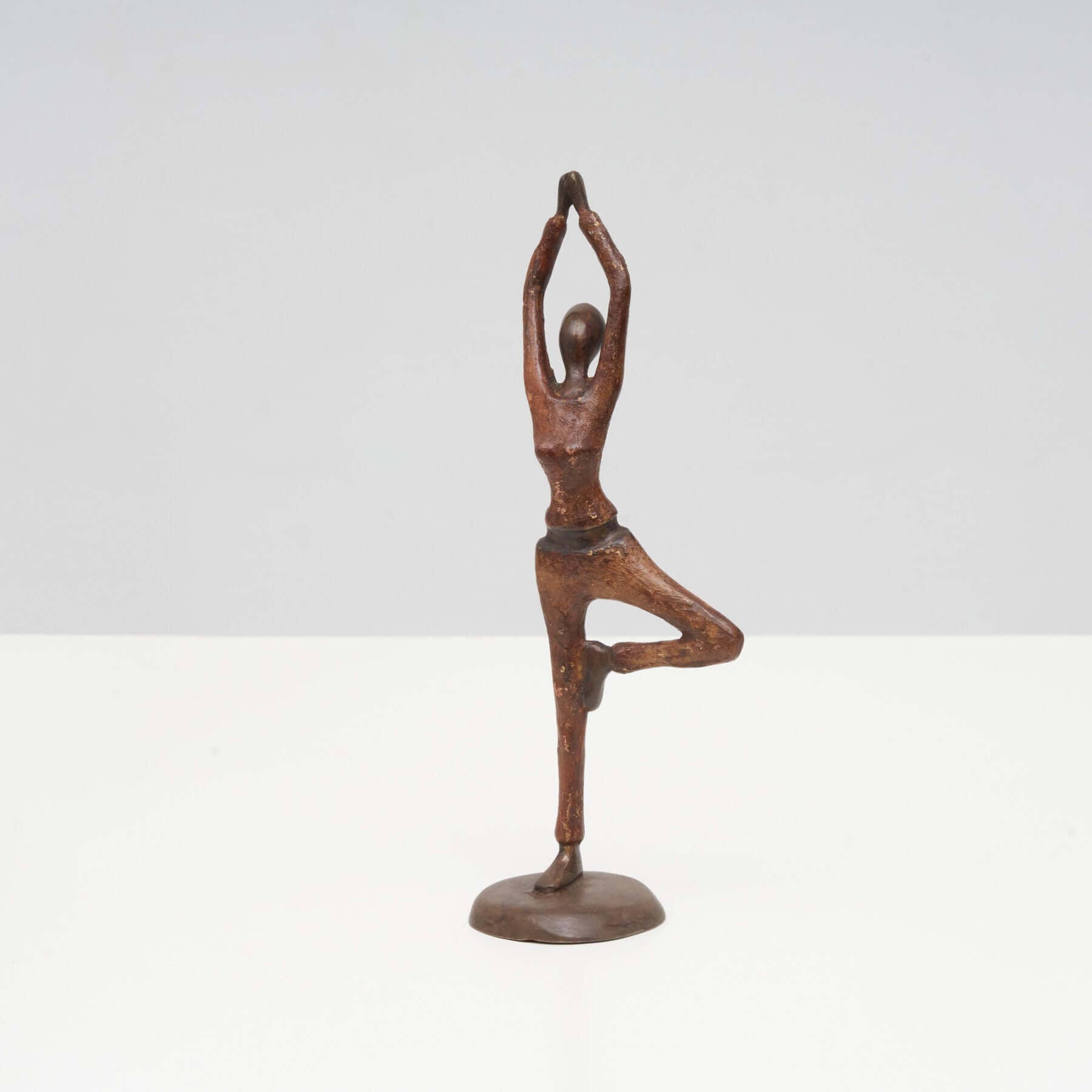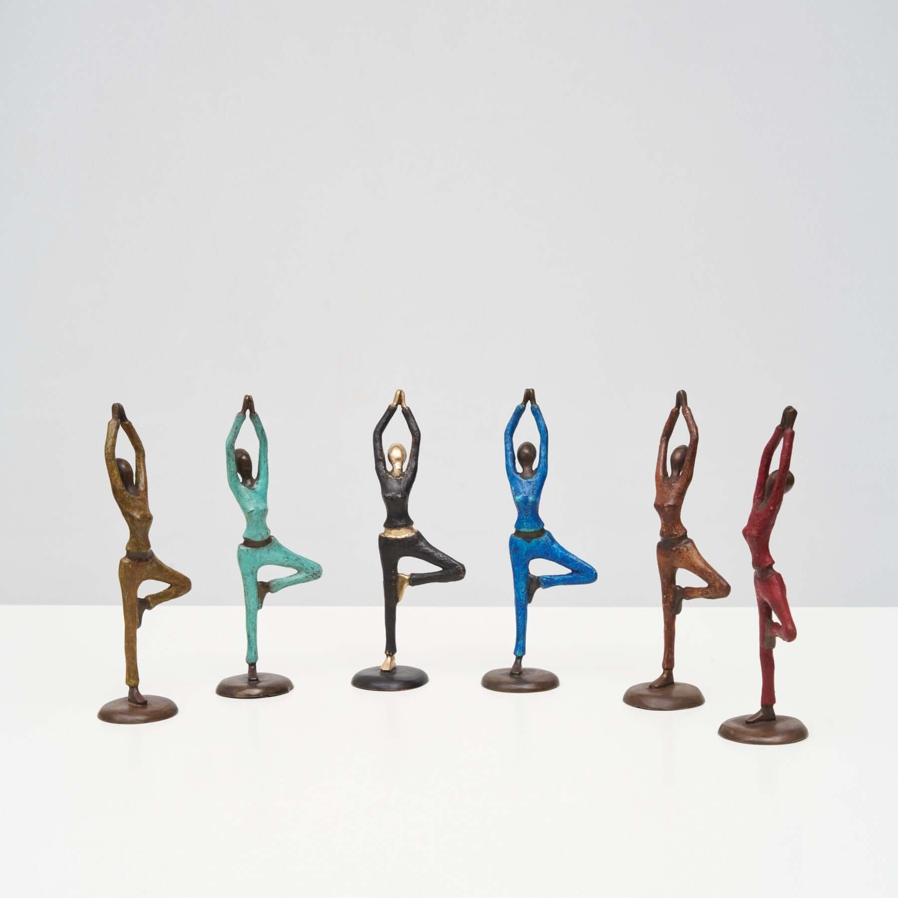 Diese eleganten Bronzeskulpturen wurden in der Werkstatt des 2025 verstorbenen burkinischen Künstlers Hamidou Ouedraogo geschaffen. “Vrksasana” kommt aus dem Sanskript und beschreibt den Einbeinstand (Baum) beim Yoga.Die Arbeit mit Bronze ist ein traditionelles Handwerk in Burkina Faso. Der Begriff Bronze bezieht sich auf verschiedene Legierungen auf der Basis von Kupfer, Zink, Blei und Zinn, deren Anteile variieren. Die Bronze stammt heute aus dem Recycling von alten Armaturen, wie Wasserhähnen oder Teilen aus Klimaanlagen.Der Künstler schafft zuerst eine Wachsskulptur, die mit einem Sandgemisch aus Lehm und Dung bedeckt und getrocknet wird. Die Form wird anschließend gekocht, das Wachs schmilzt und entweicht durch die Löcher. Die geschmolzene Legierung wird gegossen und nimmt den Platz des Wachses ein. Nach dem Abkühlen wird die Form gebrochen, um die Skulptur zu entnehmen und die letzten Feinschliffe vorzunehmen. Jedes Stück ist somit ein Unikat. Klein (S): 20 cm, 250 gMittel (M): 25 cm, 450 g Verschiedene Farben je nach Verfügbarkeit erhältlich: grün, türkis, blau, rot, braun und schwarz&gold (kein Gold, sondern die Originalfarbe von Bronze, ohne Patina).Hergestellt und fair gehandelt in Burkina Faso, Westafrika.