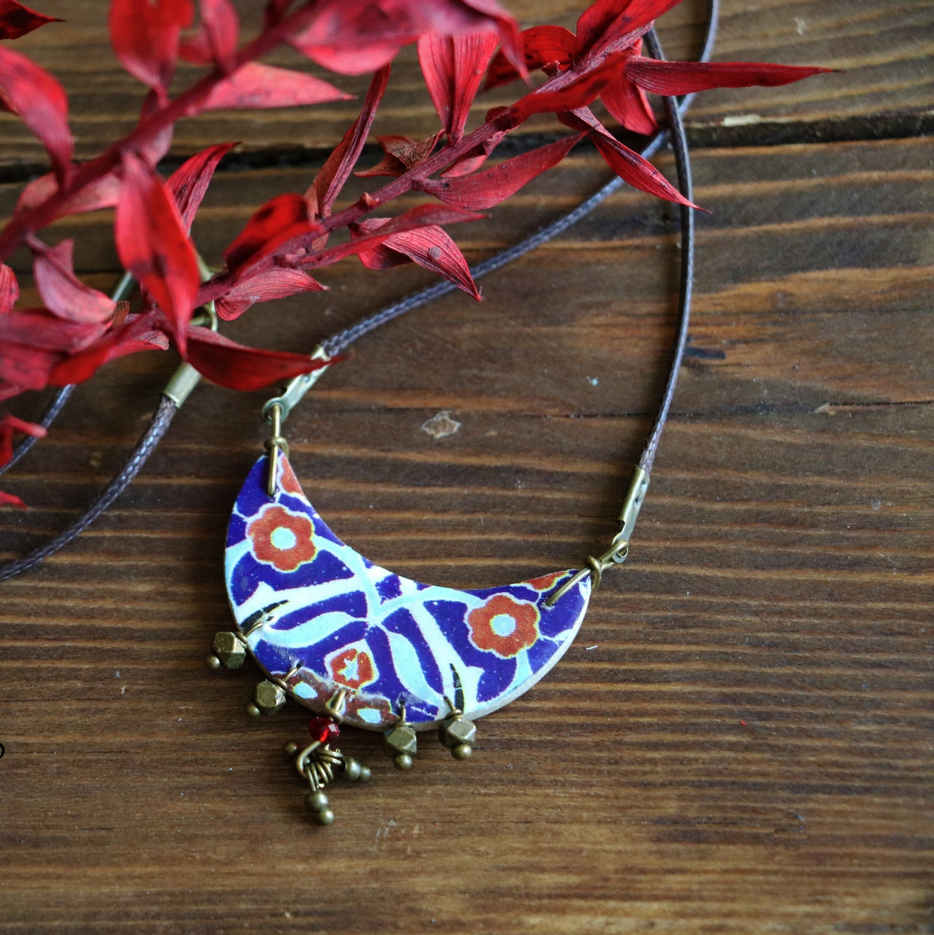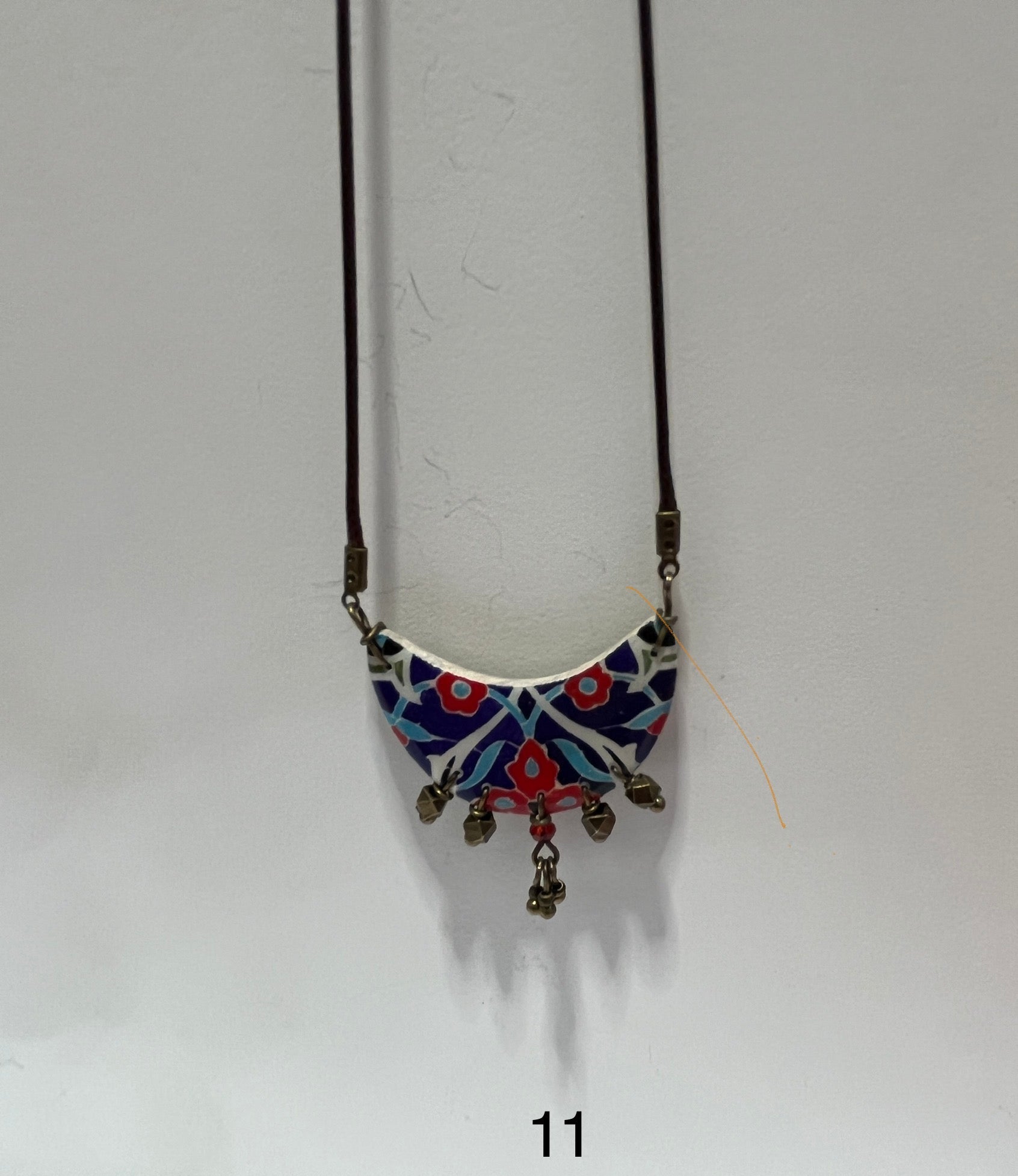 Ces colliers en carreaux s’inspirent de l’art ancien de la fabrication de carreaux persans. Les motifs arabesques colorés sur chaque pièce proviennent de mosaïques décoratives fascinantes que l’on trouve dans les mosquées et les palais historiques remontant à plusieurs siècles. En utilisant le matériau le plus courant – l’argile – cette jeune équipe d’artistes conçoit et fabrique des carreaux chatoyants qui se transforment en accessoires modernes et à la mode. La galerie Papital est le premier et unique producteur et exportateur certifié de bijoux et d’accessoires faits à la main, issus du commerce équitable en provenance d’Iran. Leur mission est d’offrir des opportunités de travail sûres, durables et bien rémunérées auxartisans économiquement défavorisés, en particulier aux femmes.Fait main et commerce équitable à Téhéran, IranMatériau : carreau en mélange d’argile et de pierre, laitonDimensions (Lxl) : pendentif 2,5cm x 3 cm Longueur totale (chaîne et pendentif) : env. 44 cmCirconférence de la chaîne : env. 75 cmPoids : env. 20 g