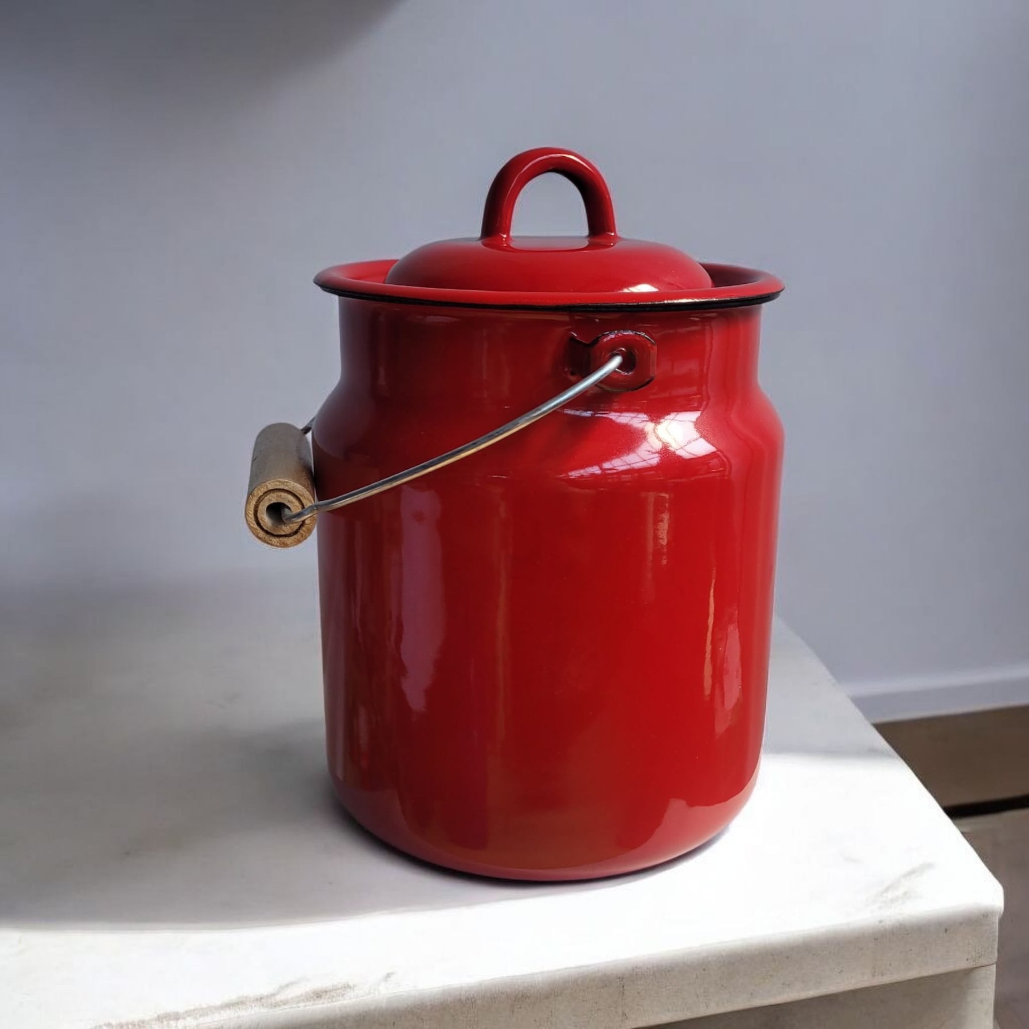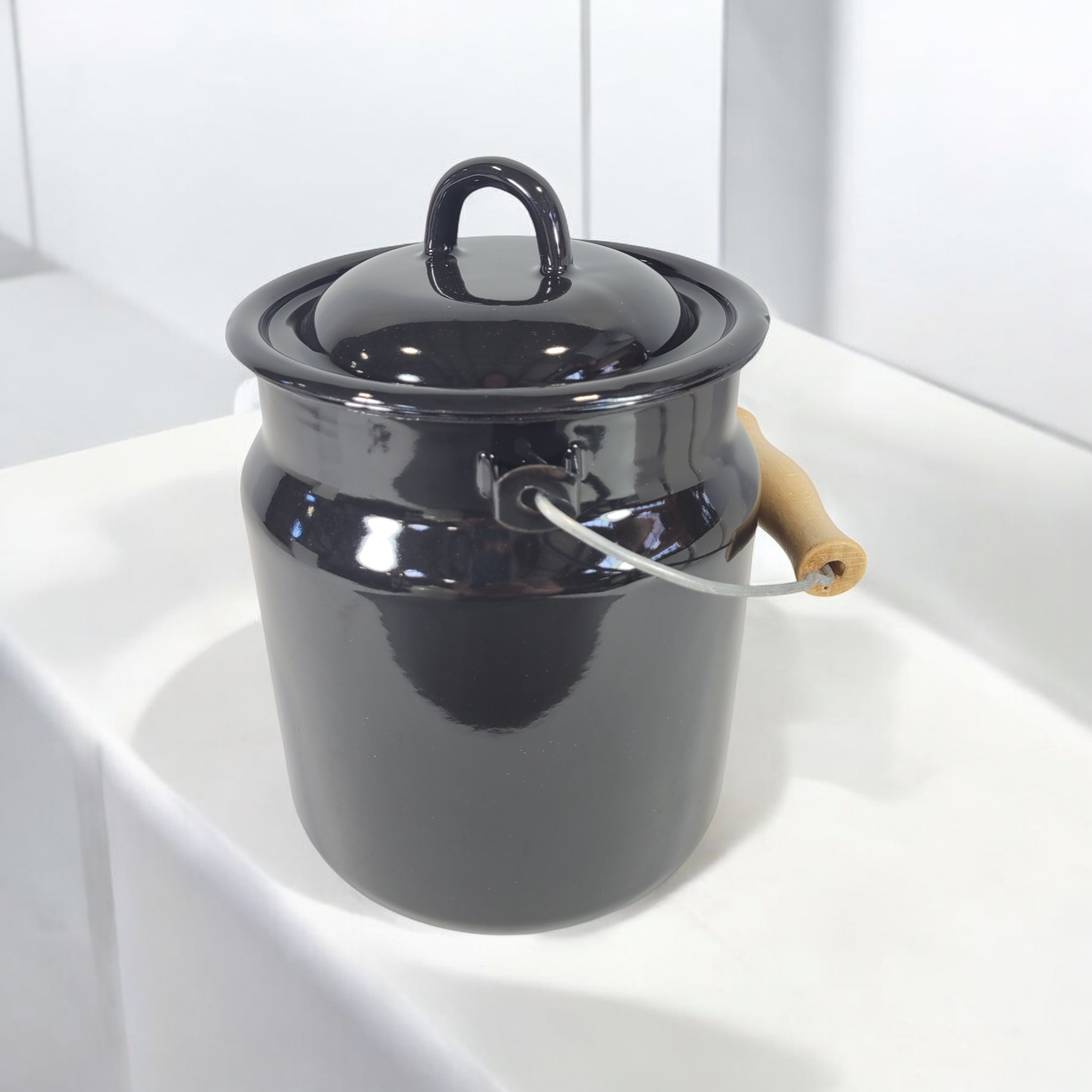 Bringt Vintage-Style in Eure Küchen mit dieser Emaille-(Milch)Kanne aus der Ukraine! Diese schöne emaillierte Kanne ist sehr gut verarbeitet und die Emaille ist sehr dick, sodass die Kanne im Alltag sehr angenehm zu benutzen ist. Ihr Gewicht in der Hand zeugt von ihrer Herstellungsqualität! Wofür man sie benutzen kann: Als Bioabfall-Eimer in der Küche oder um Küchenutensilien aufzubewahren. Lebensmittel können darin aufbewahrt werden, jedoch gibt es keinen Gummi-Ring, so dass die Kanne nicht ganz hermetisch mit dem Deckel schließt. Man kann aber den Deckel auch weglegen und die Kanne als Vase für trockene Blumen oder als Topf für eine Pflanze benutzen. In der Ukraine hergestellt, wo historisch gesehen die lokale Herstellung von Emaille-Kochgeschirr erhalten geblieben ist. Ein Artikel, der für seine lange Lebensdauer konzipiert ist. Und das ist gut so, denn das ist es, was wir in erster Linie anbieten wollen. 100% recycelbar / lange Lebensdauer / fair gehandelt in der Ukraine Reinigung Obwohl viele Emaille-Produkte als spülmaschinenfest angeboten werden, ist Handwäsche mit einem weichen Schwamm und normalem Spülmittel schonender, da die Spülmaschine das Material stumpf machen kann. Scharfe Reinigungsmittel oder Stahlbürsten sollten vermieden werden, da sie die Beschichtung beschädigen können. EigenschaftenHöhe: 19 cmDurchmesser: 15 cmFassungsvermögen: 3,3 lGewicht: 900 gNicht für die Mikrowelle geeignet. Fair Trade for Peace! Mit dem Handel mit Partner:innen aus Krisen- bzw. Konfliktgebieten kennt sich Moogoo aus. Seit Beginn des russischen Angriffskrieges in der Ukraine haben wir überlegt, welchen Beitrag wir leisten können. Deshalb haben wir beschlossen, eine neue Partnerschaft mit einem ukrainischen Unternehmen einzugehen, das sich auf die Herstellung von Emaille-Geschirr spezialisiert hat. Diese Arbeit ist eine Tradition, die in den Ländern des ehemaligen Ostblocks weit verbreitet ist, und auch in der Ukraine gibt es noch eine entsprechende Industrie. Neben dem Vintage-Look, den wir besonders schätzen, ist das Geschirr aufgrund seiner Widerstandsfähigkeit, Langlebigkeit und Recycelbarkeit ein Produkt, das unseren Werten entspricht. Außerdem spendet Moogoo pro verkaufte Kanne 1€ an die .