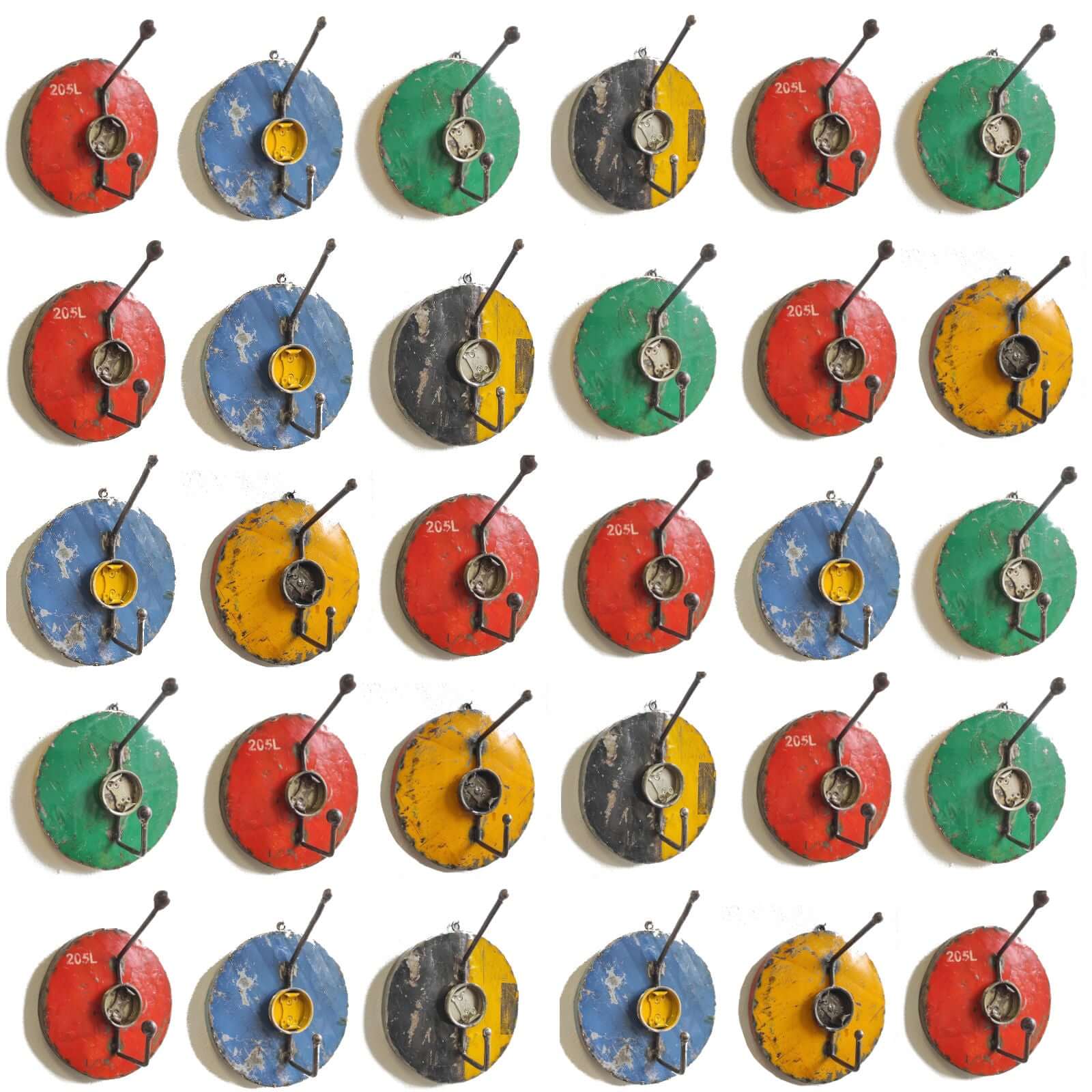 Der schlichte Aufhänger wird aus recycelten Ölfässern und Altmetall in mühevoller Handarbeit gefertigt. Ob als Garderobe für Jacke, Küchenschürze oder Bademantel ist er auch nutzbar als Ablagemöglichkeit für Schlüssel oder sonstige wichtige Gegenstände. Durchmesser: 20 cm Das Produkt kann vom Bild abweichen, da es auf der Basis vom Upcycling alter Rohstoffe handgefertigt wird.