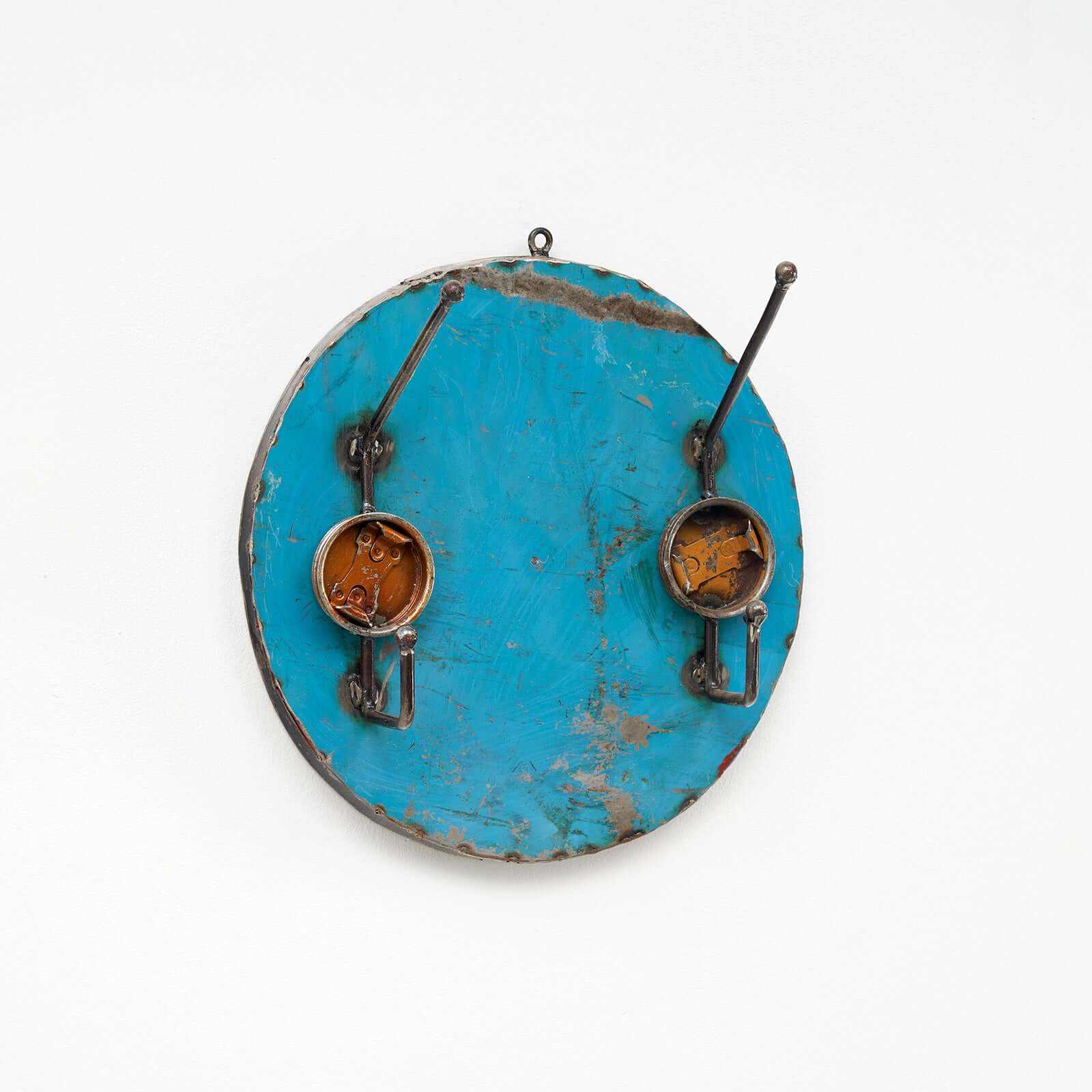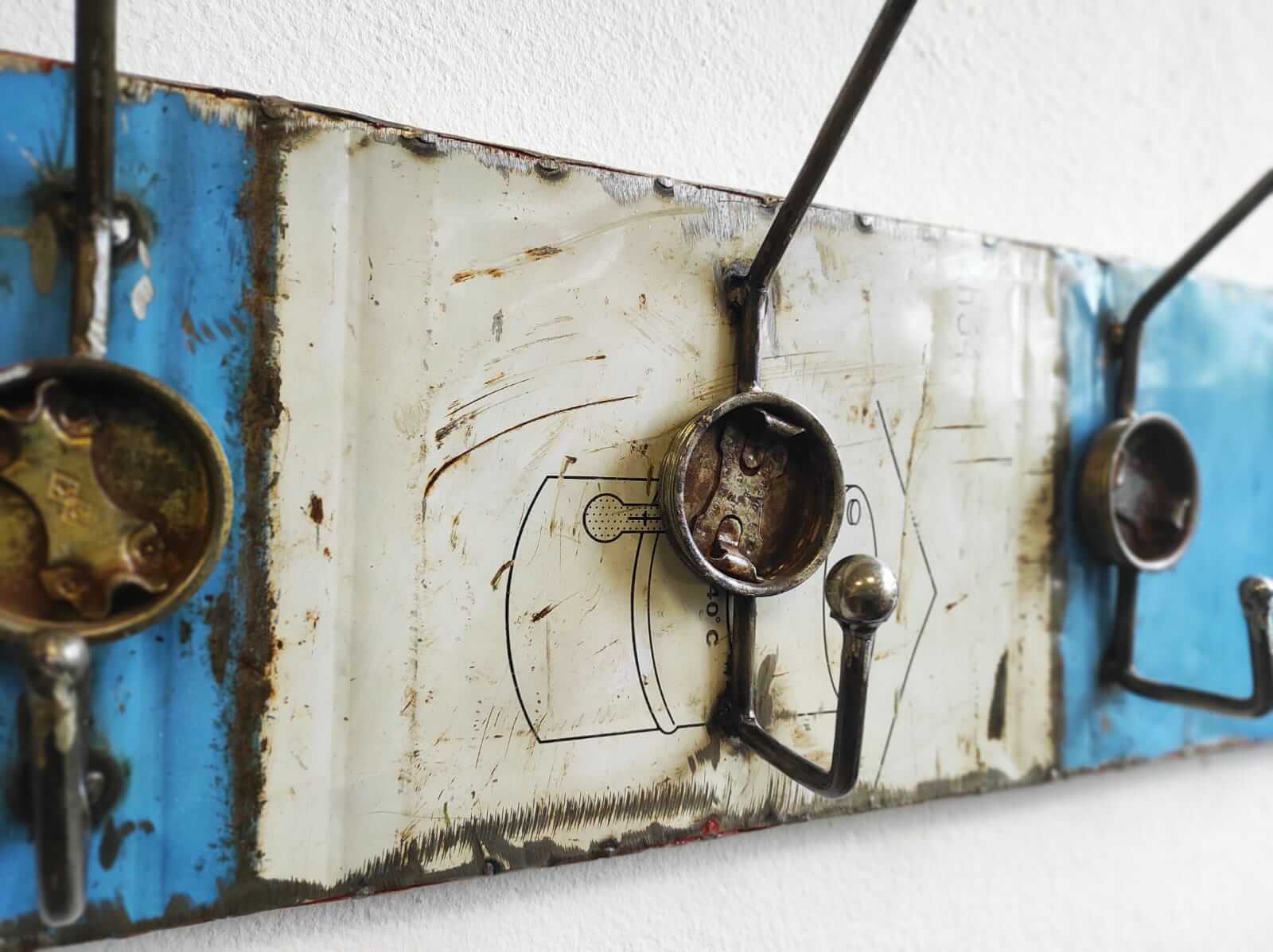 Der schlichte Aufhänger wird aus recycelten Ölfässern und Altmetall in mühevoller Handarbeit gefertigt. Ob als Garderobe für Jacke, Küchenschürze oder Bademantel ist er auch nutzbar als Ablagemöglichkeit für Schlüssel oder sonstige wichtige Gegenstände. Länge: circa 90 cm / Höhe: 20 cm Das Produkt kann vom Bild abweichen, da es auf der Basis vom Upcycling alter Rohstoffe handgefertigt wird.