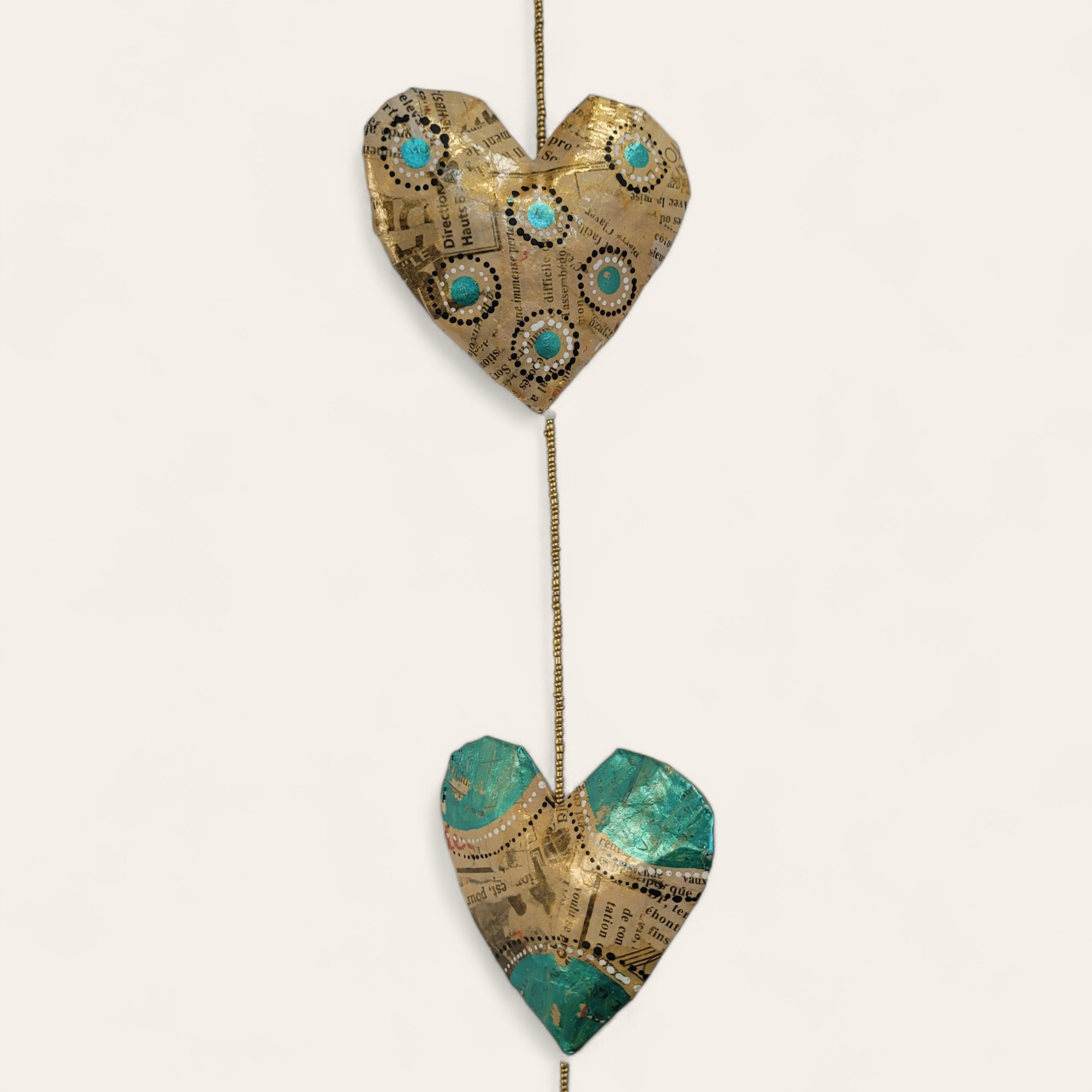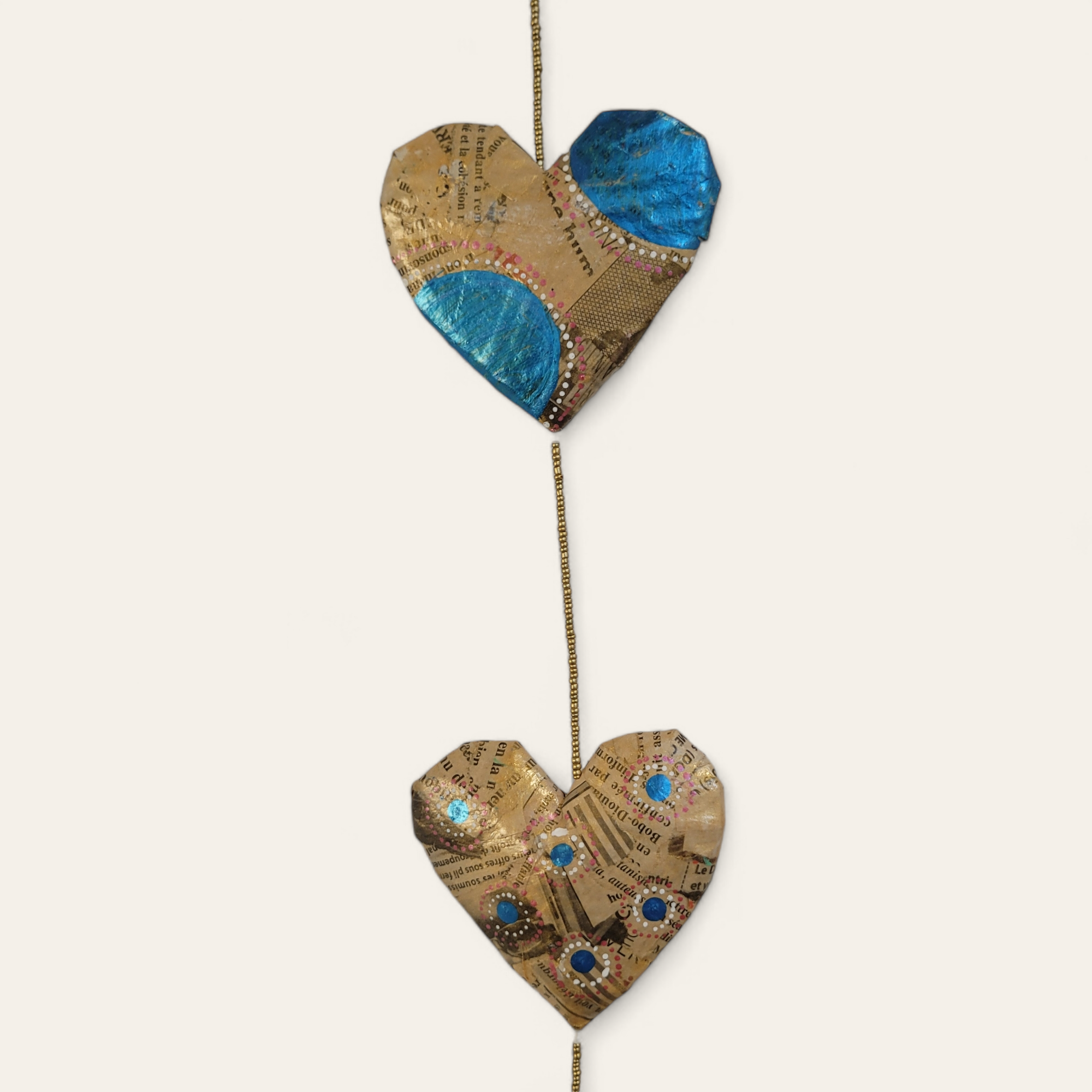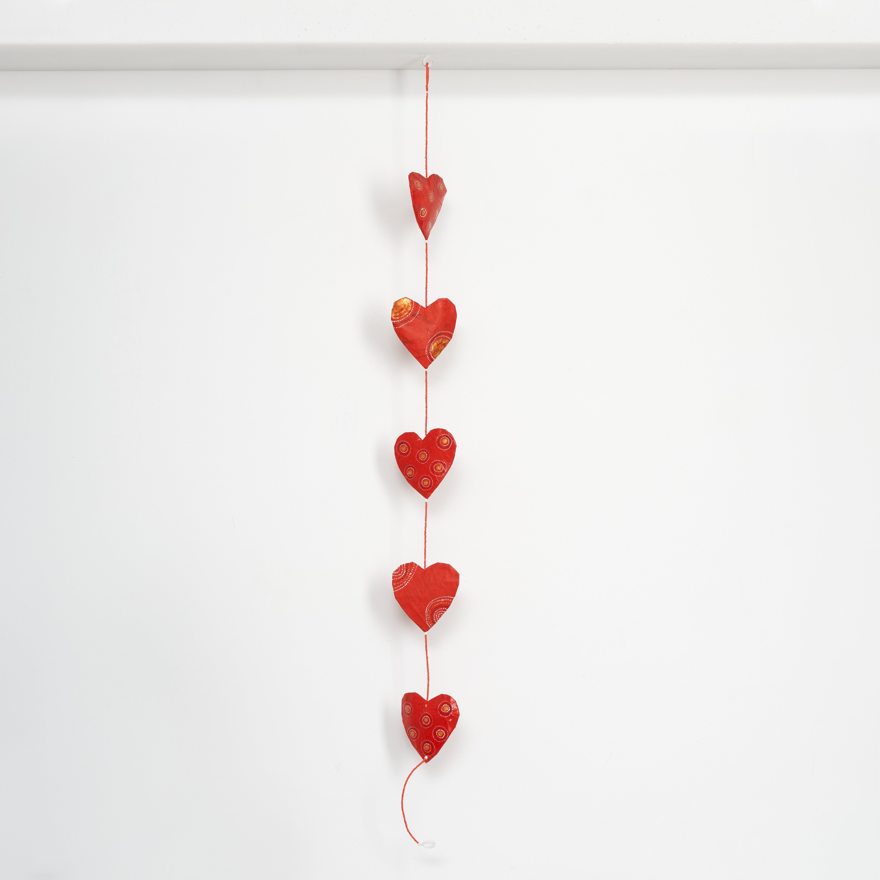 Die Pappmaché-Produkte sind aus altem Papier (Zeitungen, Zeitschriften) per Hand hergestellt. Jedes Stück ist ein Unikat. Wir sind stolz darauf, diese neuen Produkte zu präsentieren, die in Zusammenarbeit mit einer Frauen-Kooperative aus Ouagadougou entstanden sind. Faire Arbeitsbedingungen sowie eine gerechte Entlohnung der Mitarbeiterinnen stehen im Mittelpunkt dieser neuen Partnerschaft. Hergestellt und fair gehandelt in Ouagadougou. In verschiedenen Farben verfügbar. Die Motive sind einzigartig und somit kann das Produkt dem Bild abweichen. Gewicht: ca. 300gLänge: : ca. 150 cmGröße eines Herzens: ca. 10x10cm