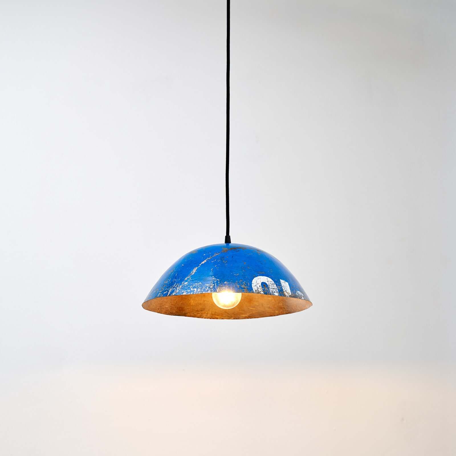 Diese Deckenlampe besticht durch ihr minimalistisches Design. Recycelte Ölkanister dienen als Hauptrohstoffe für die Herstellung dieser einzigartigen Accessoires. Farbenfroh und zeitlos sorgt diese Deckenlampe für einen modernen Industrial-Look in Ihrem Raum. In Burkina Faso nach Maßgabe sozialer und ökologischer Nachhaltigkeit handgefertigt. Material: ÖlfässerDurchmesser: zw. 38 und 42 cminkl. 1 Meter schwarzes Textilkabel (samt Baldachin)Fassung: E27 (geliefert ohne Glühbirne) Das Produkt kann vom Bild abweichen, da es sich um handgefertigte Unikate handelt.