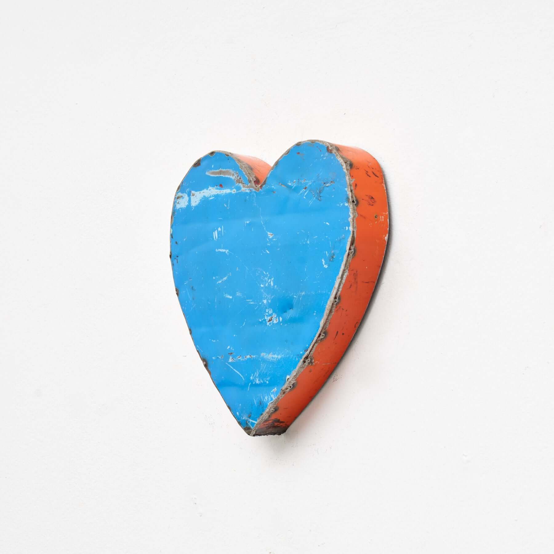 Herzen aus recycelten Ölfässern. Ein wahrer Hingucker für Ihre Wanddekoration! Das Herz steht nicht von allein und muss angelehnt werden. Es ist hohl und kann an die Wand anhand zwei Nägel (nicht mitgeliefert) angehängt werden. Jedes Stück ist handgemacht und somit ein Unikat.Das Herz eignet sich sehr gut in Kombination mit unseren Upcycling-Buchstaben. Farbe und Kratzern können zwischen Produkt und Bild abweichen. Hergestellt und fair gehandelt in Ouagadougou, Burkina Faso Klein (ca. 22 cm hoch / 500 g)Medium (ca. 45 cm hoch / 2 kg)
