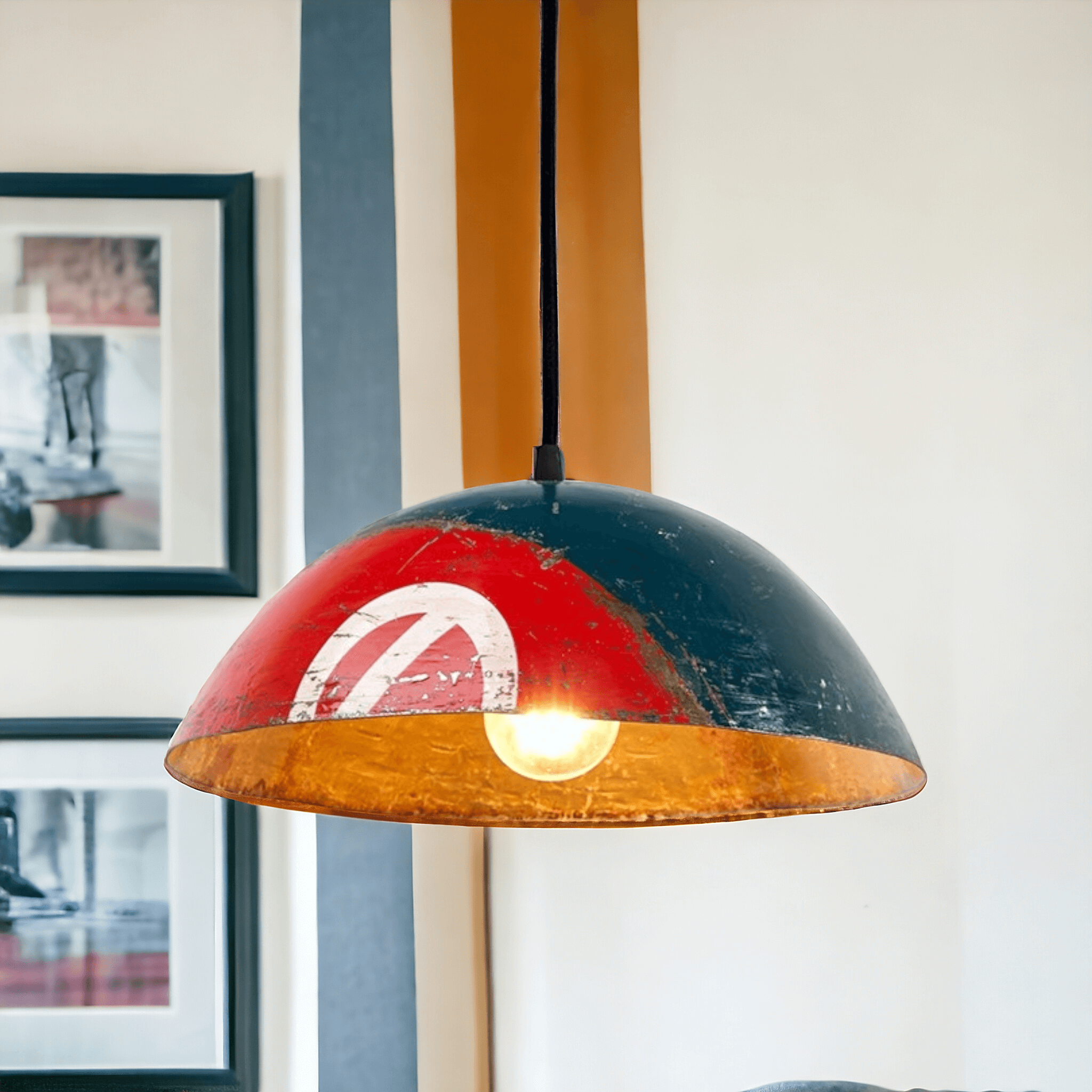 Diese Deckenlampe besticht durch ihr minimalistisches Design. Recycelte Ölkanister dienen als Hauptrohstoffe für die Herstellung dieser einzigartigen Accessoires. Farbenfroh und zeitlos sorgt diese Deckenlampe für einen modernen Industrial-Look in Ihrem Raum. In Burkina Faso nach Maßgabe sozialer und ökologischer Nachhaltigkeit handgefertigt. Material: recycelte ÖlfässerDurchmesser: ca. 34 cminkl. 1 Meter Textilkabel und Baldachin (schwarz)Fassung: E27 Das Produkt kann vom Bild abweichen, da es sich um handgefertigte Unikate handelt. Logo bzw. Prints auf der Lampe sind nicht bei jedem Exemplar vorhanden.