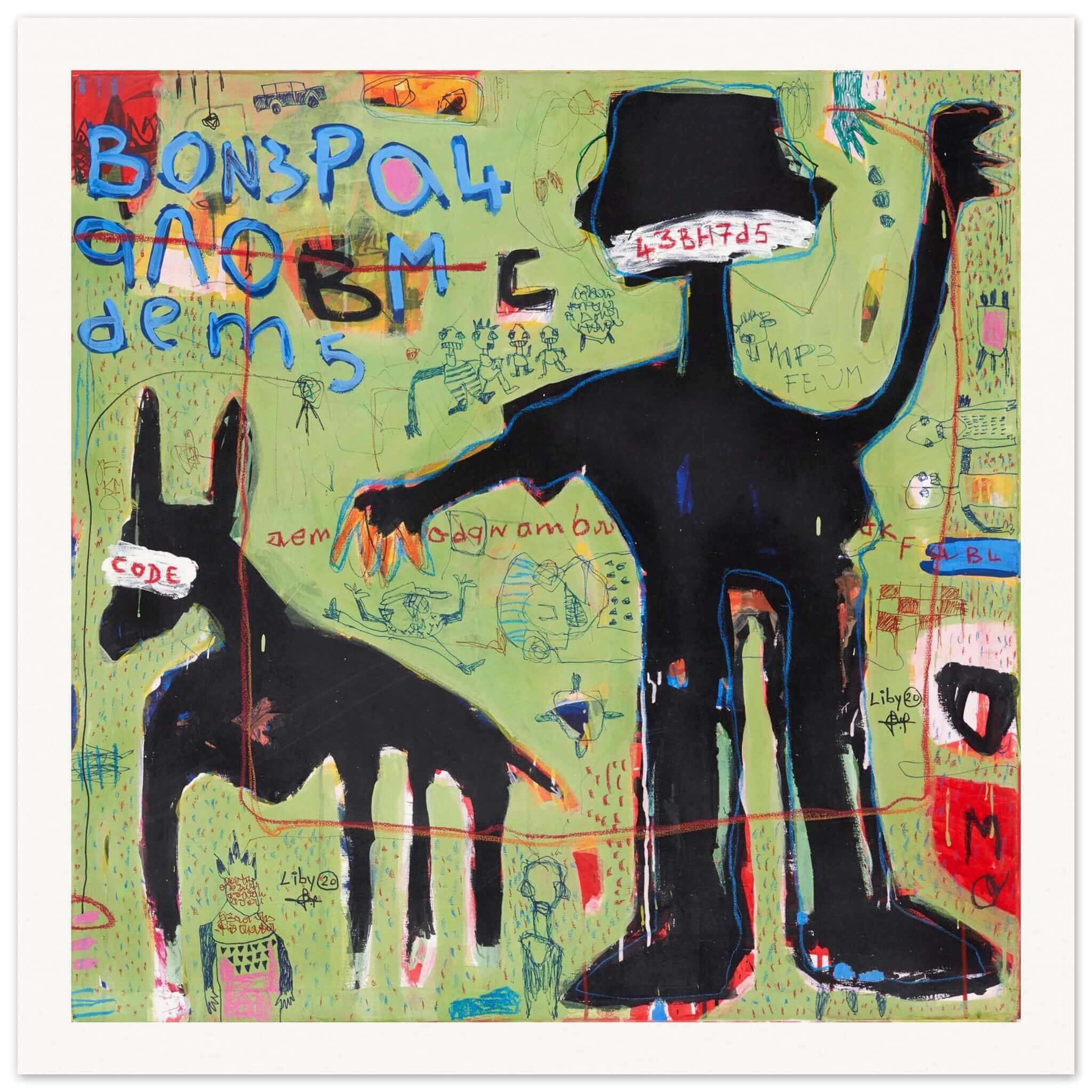 Liby Lougue , moi meme je ne sais pas , 2020 Liby Lougué wurde 1987 in Ouagadougou (Burkina Faso) als Sohn eines Kunstmalers und einer Schneiderin geboren. Er begann schon in jungen Jahren mit dem Zeichnen, indem er Comics und Porträts zeichnete, die er an seine Klassenkameraden verkaufte. Diese Leidenschaft für das Zeichnen entwickelte sich unter dem Eindruck und der Anleitung seines Vaters allmählich zu einer figurativen Malerei. Seine ersten Gemälde bestanden vor allem aus einer Fusion von Acrylfarbe und einer Collage aus heimischen Stoffen, die er im Atelier seiner Mutter gesammelt hatte. Im Jahr 2008 lernte er den burkinischen Maler und Designer Hamed Ouattara kennen, mit dem er seine Maltechniken verfeinerte. Seit 2011 nimmt er an zahlreichen Ausstellungen in Burkina Faso und Weltweit. Liby Lougué ist ein bekennender Bewunderer vom Jean-Michel Basquiats (1960 – 1988) Werk, das ihn auch sehr inspiriert. Wie bei Basquiat spiegeln auch die Werke von Liby Lougué seine Identität wider. Liby Lougué untersucht das Alltagsleben in Burkina Faso mit besonderer Aufmerksamkeit. Seine Arbeit enthält in den ersten Serien einen biografischen Gehalt. Der Künstler nutzt die Malerei mit dem Ziel, seine Beschwerden, seine Gefühle und seine Sicht auf die Welt und unsere Gesellschaft auszudrücken. Seine Werke offenbaren die sozialen Realitäten einer sich im Umbruch befindenden afrikanischen Gesellschaft. Wir bieten drei Formate an: – Unser schwereres, weißes, mattes Premium-Papier hat eine natürliche, glatte, ungestrichene Oberfläche, die sich luxuriös anfühlt. Das Papier mit einem Gewicht von 200 g/m2/ 80 lb ist haltbar und langlebig. – Unsere Master’s Edition, ein cremefarbenes Papier in Museumsqualität, ist ungestrichen und die beste Wahl für Kunstliebhaber, die erstklassige Qualität zu schätzen wissen, um Kunstwerke auf luxuriöse Weise zu genießen. Das 250 g/ 110lb-Papier eignet sich perfekt für Kunstwerke und ist so konzipiert, dass es jahrelang hält, ohne seine ursprüngliche Schönheit zu verlieren. Unser mattes Papier ist ungestrichen und naturweiß (off-white). – Unsere gerahmten Holzposter sind die perfekte Kombination aus Schlichtheit und Robustheit. Das Poster ist auf unserem Master’s Edition Papier in Museumsqualität gedruckt. Es ist cremefarben, ungestrichen und die beste Wahl für Kunstliebhaber, die erstklassige Qualität schätzen, um Kunstwerke auf luxuriöse Weise zu genießen. Eigenschaften: Wir verwenden FSC-zertifiziertes Papier oder gleichwertige Zertifizierungen, je nach regionaler Verfügbarkeit. Das ist besser für die Menschen und den Planeten. Jedes Poster wird in einer robusten Verpackung versandt, damit es sicher und geschützt ankommt.