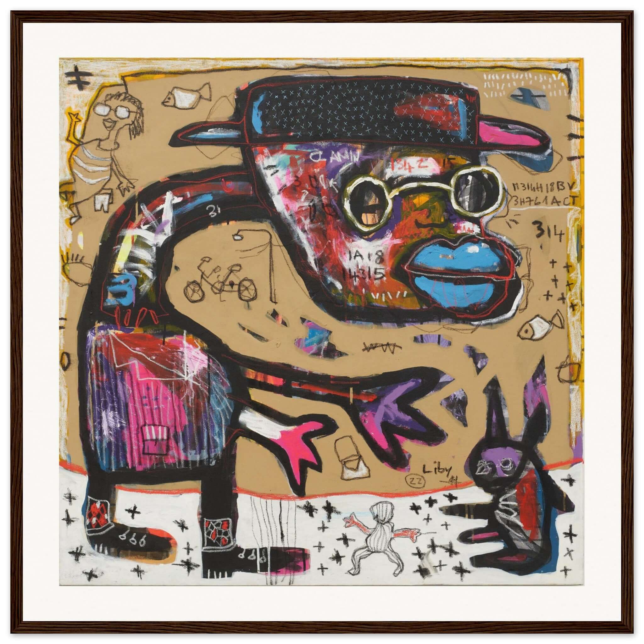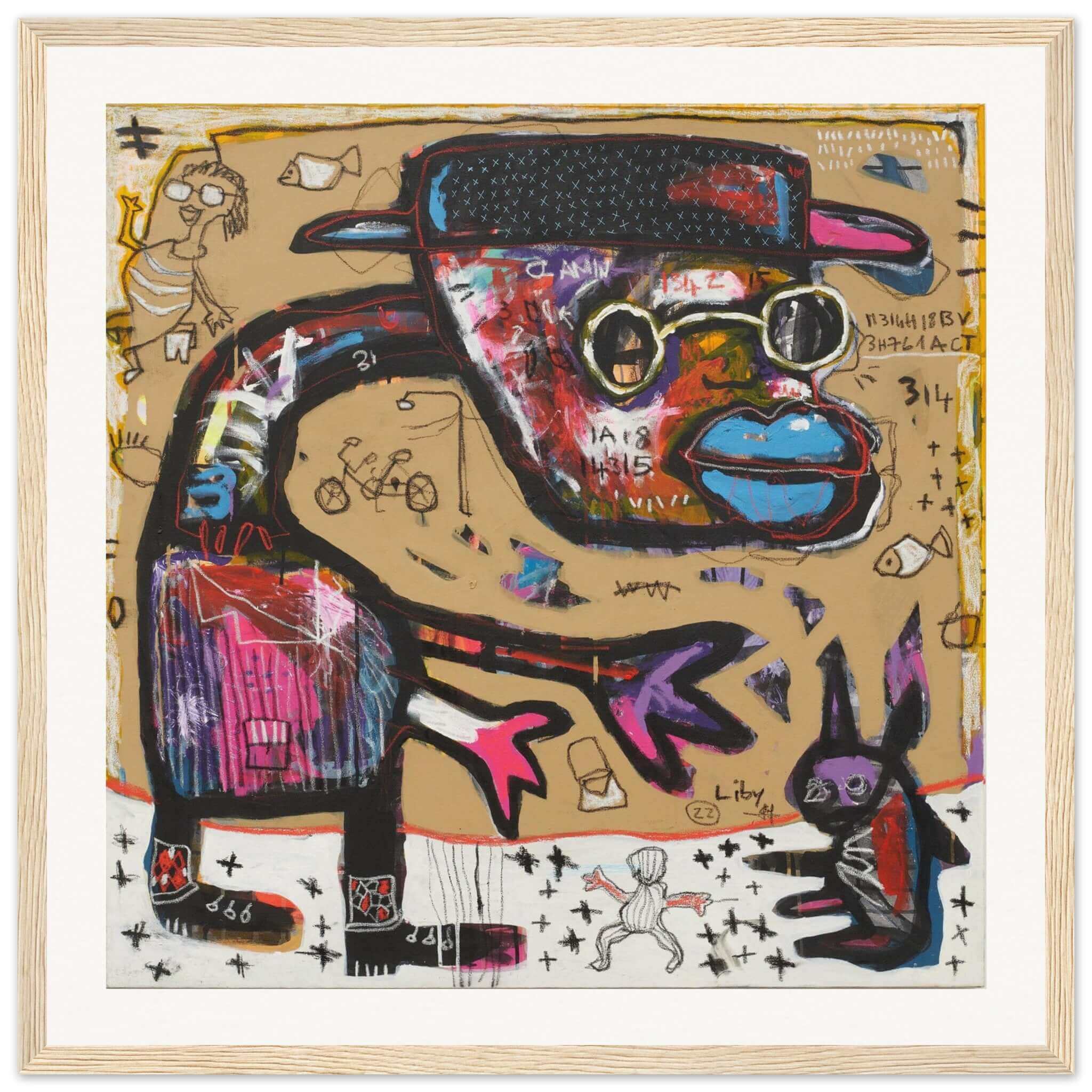 “Tonton Bouba”, Libye Lougué, 2023 Liby Lougué wurde 1987 in Ouagadougou (Burkina Faso) als Sohn eines Kunstmalers und einer Schneiderin geboren. Er begann schon in jungen Jahren mit dem Zeichnen, indem er Comics und Porträts zeichnete, die er an seine Klassenkameraden verkaufte. Diese Leidenschaft für das Zeichnen entwickelte sich unter dem Eindruck und der Anleitung seines Vaters allmählich zu einer figurativen Malerei. Seine ersten Gemälde bestanden vor allem aus einer Fusion von Acrylfarbe und einer Collage aus heimischen Stoffen, die er im Atelier seiner Mutter gesammelt hatte. Im Jahr 2008 lernte er den burkinischen Maler und Designer Hamed Ouattara kennen, mit dem er seine Maltechniken verfeinerte. Seit 2011 nimmt er an zahlreichen Ausstellungen in Burkina Faso und Weltweit. Liby Lougué ist ein bekennender Bewunderer vom Jean-Michel Basquiats (1960 – 1988) Werk, das ihn auch sehr inspiriert. Wie bei Basquiat spiegeln auch die Werke von Liby Lougué seine Identität wider. Liby Lougué untersucht das Alltagsleben in Burkina Faso mit besonderer Aufmerksamkeit. Seine Arbeit enthält in den ersten Serien einen biografischen Gehalt. Der Künstler nutzt die Malerei mit dem Ziel, seine Beschwerden, seine Gefühle und seine Sicht auf die Welt und unsere Gesellschaft auszudrücken. Seine Werke offenbaren die sozialen Realitäten einer sich im Umbruch befindenden afrikanischen Gesellschaft. Wir bieten drei Formate an: – Unser schwereres, weißes, mattes Premium-Papier hat eine natürliche, glatte, ungestrichene Oberfläche, die sich luxuriös anfühlt. Das Papier mit einem Gewicht von 200 g/m2/ 80 lb ist haltbar und langlebig. – Unsere Master’s Edition, ein cremefarbenes Papier in Museumsqualität, ist ungestrichen und die beste Wahl für Kunstliebhaber, die erstklassige Qualität zu schätzen wissen, um Kunstwerke auf luxuriöse Weise zu genießen. Das 250 g/ 110lb-Papier eignet sich perfekt für Kunstwerke und ist so konzipiert, dass es jahrelang hält, ohne seine ursprüngliche Schönheit zu verlieren. Unser mattes Papier ist ungestrichen und naturweiß (off-white). – Unsere gerahmten Holzposter sind die perfekte Kombination aus Schlichtheit und Robustheit. Das Poster ist auf unserem Master’s Edition Papier in Museumsqualität gedruckt. Es ist cremefarben, ungestrichen und die beste Wahl für Kunstliebhaber, die erstklassige Qualität schätzen, um Kunstwerke auf luxuriöse Weise zu genießen. Wir verwenden FSC-zertifiziertes Papier oder gleichwertige Zertifizierungen, je nach regionaler Verfügbarkeit. Das ist besser für die Menschen und den Planeten. Jedes Poster wird in einer robusten Verpackung versandt, damit es sicher und geschützt ankommt.