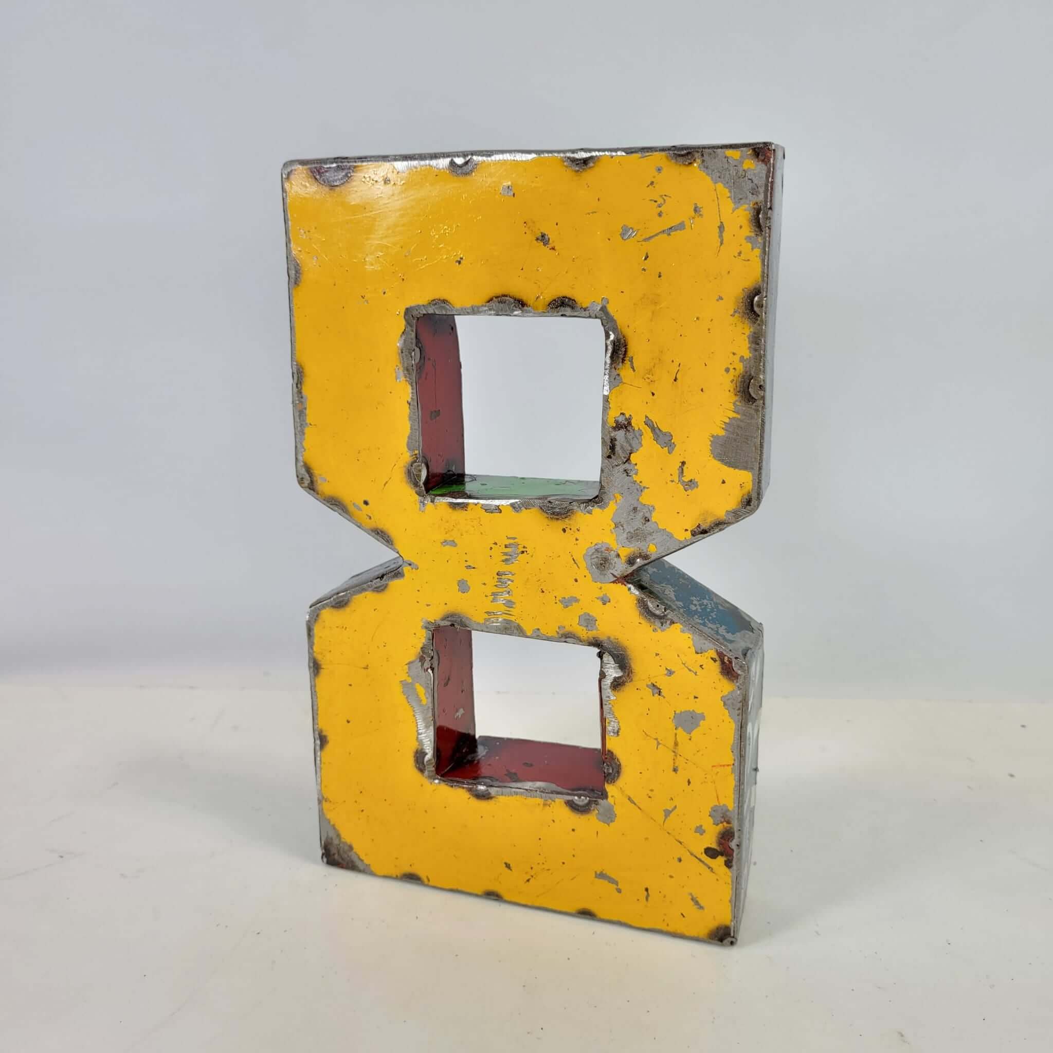 Die Upcycling-Zahlen werden in Burkina Faso unter Maßgabe sozialer und ökologischer Nachhaltigkeit hergestellt. Recycelte Öl-Kanister werden als Hauptrohstoff für die Erstellung dieser modernen Design-Objekte verwendet. Jede Zahl wird individuell gefertigt und ist daher ein wahres Unikat! Die Zahlen sind innen hohl und dadurch leicht im Gewicht sowie einfach aufzuhängen oder aufzustellen. KLEINHöhe: 22 cmBreite: 14 cmTiefe: 3 cmGewicht: ca. 450gGROSSHöhe: 50 cmBreite: 35 cmTiefe: 7,5 cmGewicht: ca. 2kg Handgefertigt und fair gehandelt in Burkina Faso, Westafrika.Jedes Stück ein Unikat, somit kann das Produkt (Farbe) vom Bild abweichen.