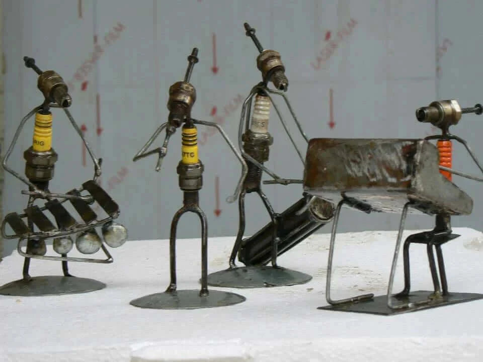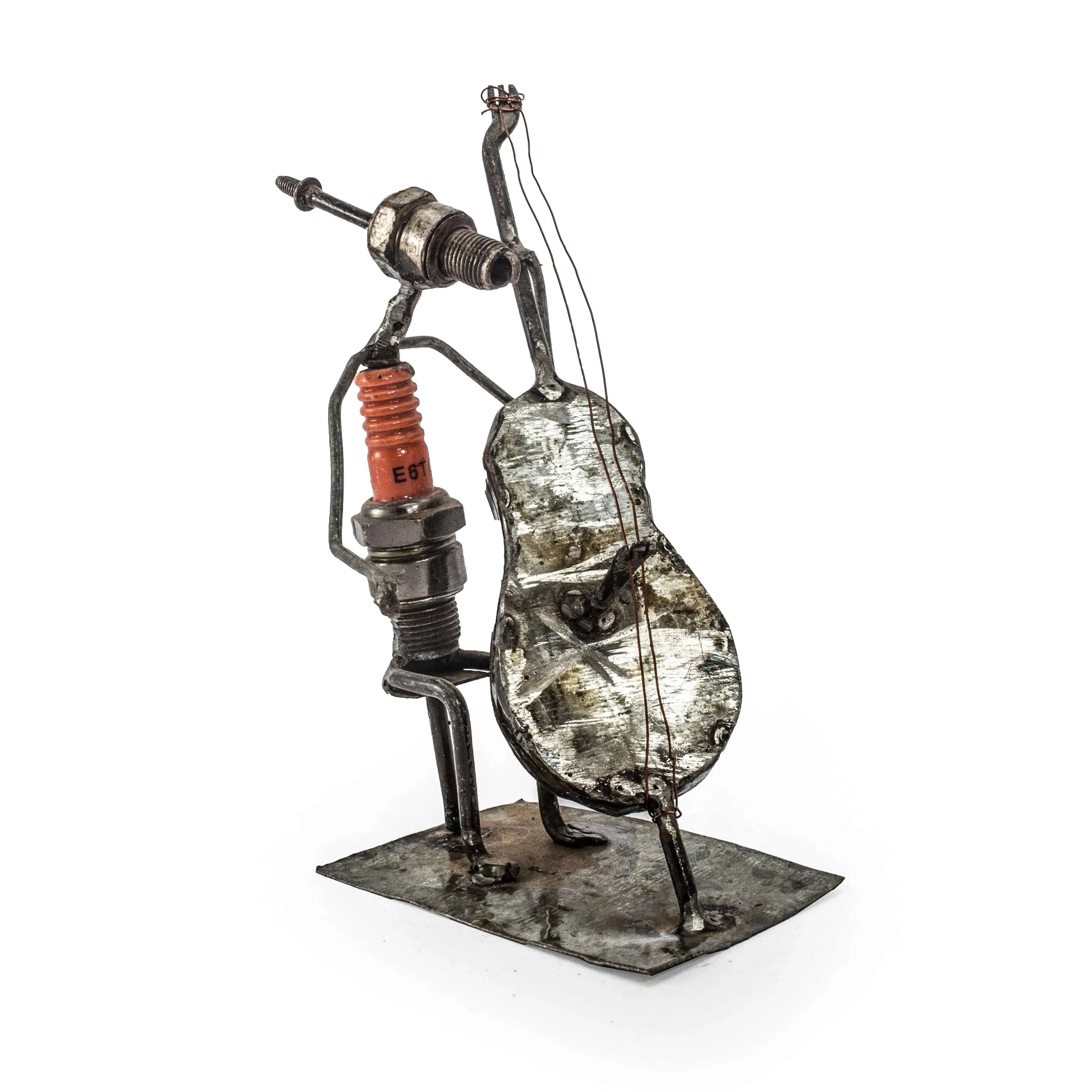 Dürfen wir vorstellen: Émile und Matthieu, zwei einzigartige Design-Figuren, hergestellt aus ausrangierten Motorrad-Zündkerzen, Altmetall und was sich sonst noch finden lässt auf dem Schrottplatz. In mühevoller Handarbeit werden die ausgewählten Teile zu diesen ausgefallenen Figürchen zusammengeschweißt – und das natürlich möglichst ressourcenschonend und nachhaltig! Ob als Sportler, Gärtner, Zahnarzt oder Geschäftsmänner – die beiden Formwandler sind nicht nur ein Geschenk, sondern ein Unikat!Hergestellt und fair gehandelt in Burkina Faso.Hier handelt es sich um verschiedene Musiker:innen. Der Preis gilt jeweils für eine Figur. Wählen Sie diese über das Drop&Down-Menü. Designer: Emile & MatthieuHöhe: ca. 12-15 cmGewicht: ca. 0,200 kg Das Produkt (z.B. Farbe der Zündkerzen) kann vom Bild abweichen.