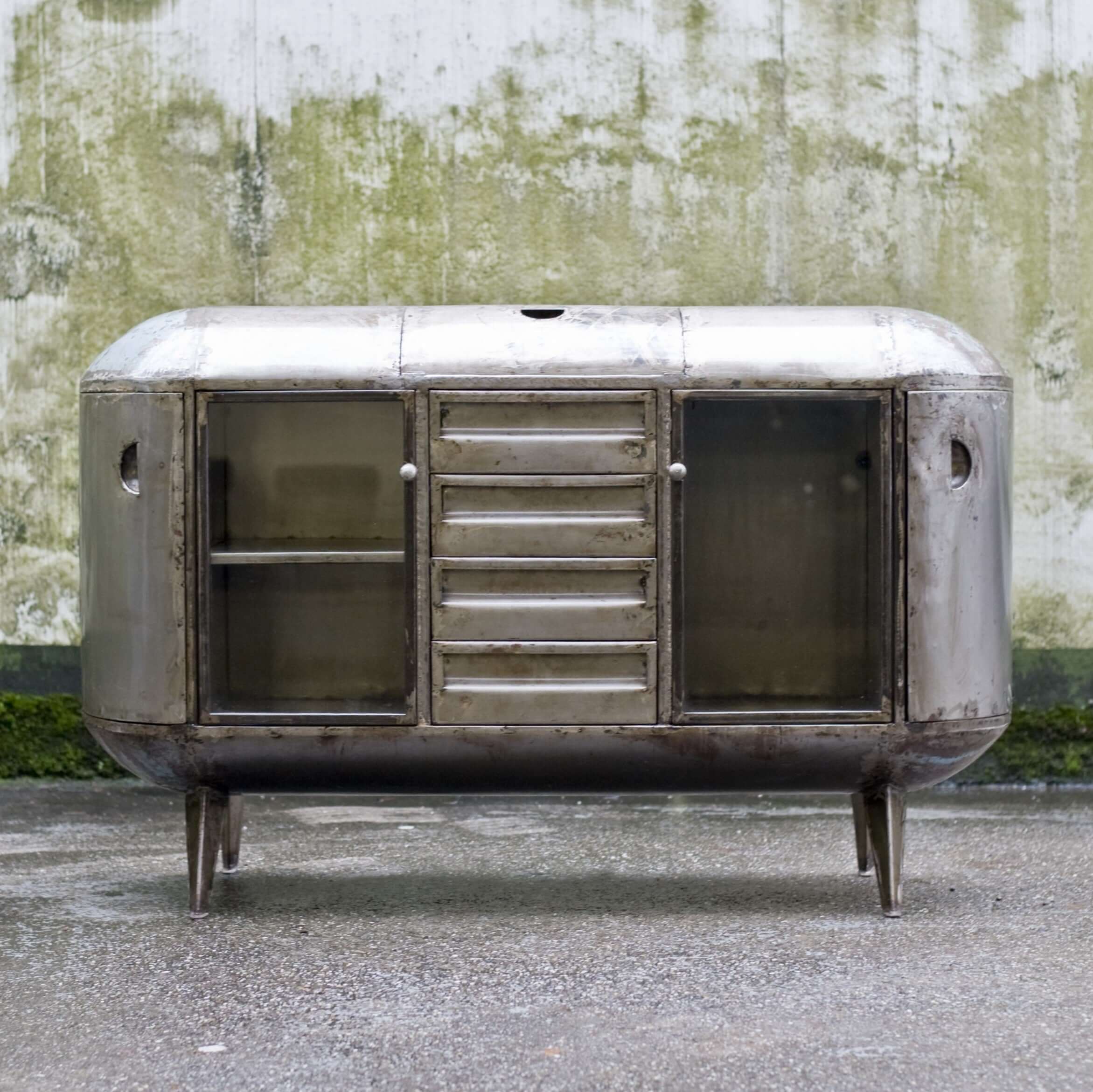 Sideboard Kommode “Nassara Bu” aus Stahl und Fraké-Holz Upcycling